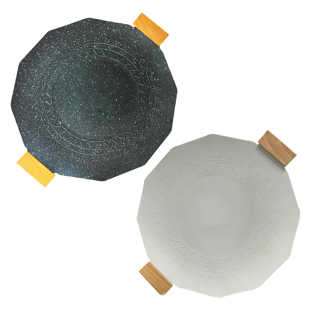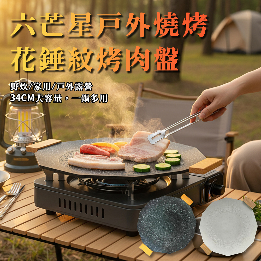 產品名稱:【ENNE】六芒星戶外燒烤花錘紋34cm不沾烤肉盤-兩色任選(K0060)