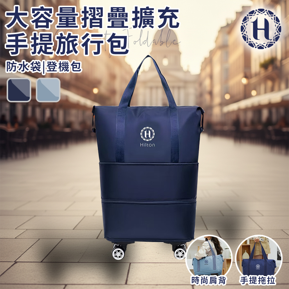 產品名稱:【Hilton 希爾頓】大容量摺疊擴充手提旅行包/二色任選