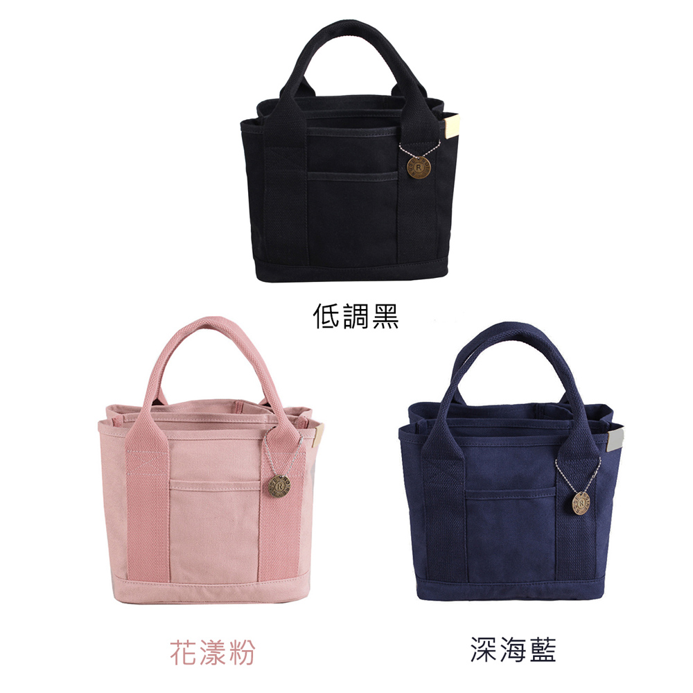 格層功能表(立體平放測量): 尺寸/CM 左右寬23 x上下高21 x 底厚15 材質: 帆布 重量: 350g 主夾層 1 內收納層2 外收納袋 1 手機袋 1 揹法: 手提
