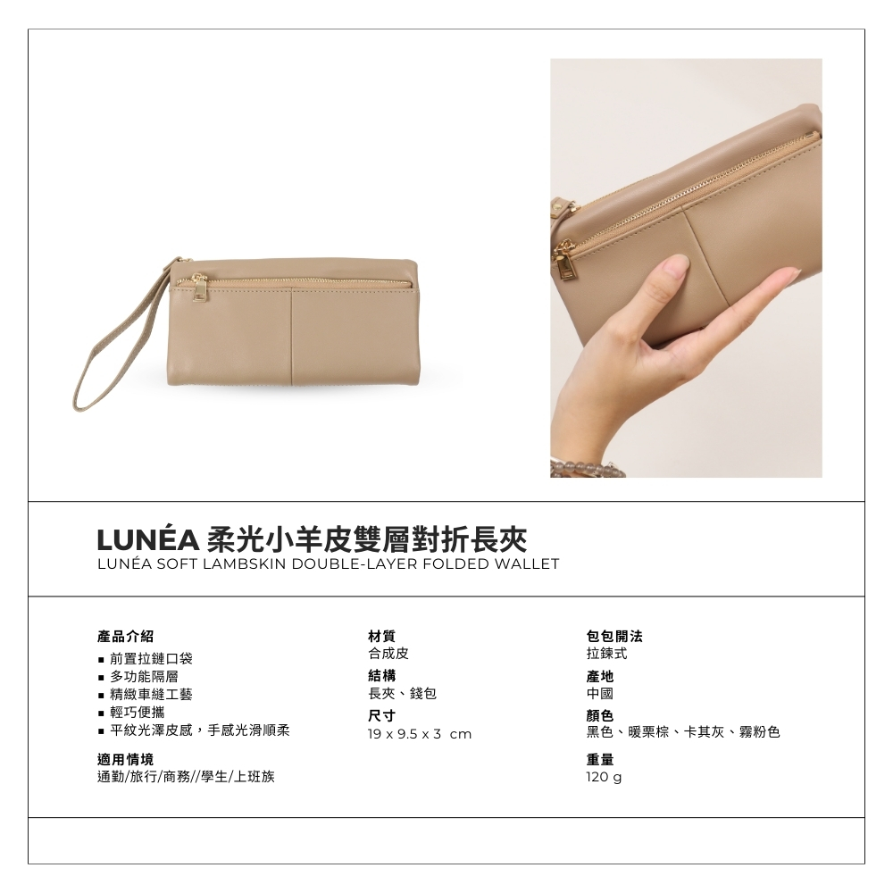 LUNÉA 柔光小羊皮雙層對折長夾 多卡位收納 人氣女用皮夾 女夾 錢包 氣質百搭長夾