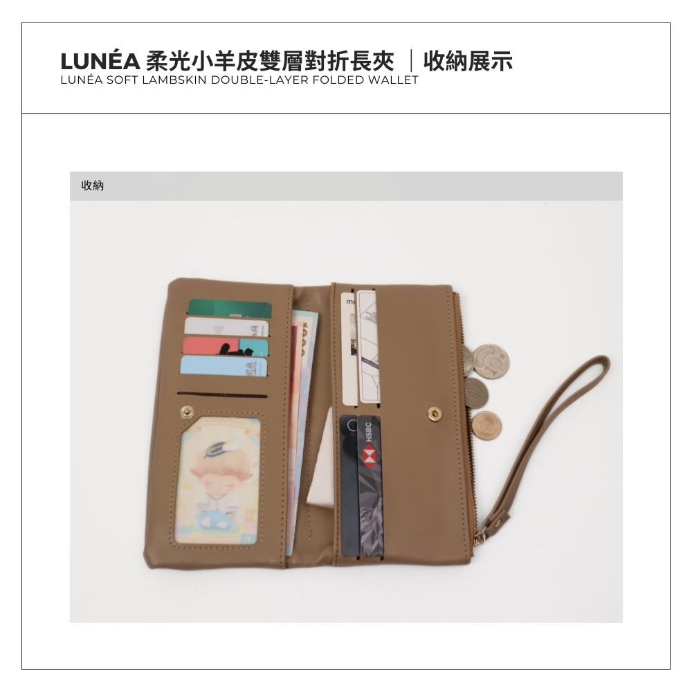 LUNÉA 柔光小羊皮雙層對折長夾 多卡位收納 人氣女用皮夾 女夾 錢包 氣質百搭長夾