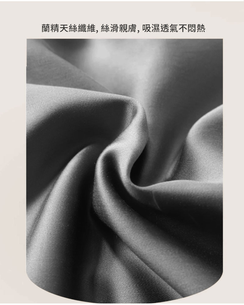 採用 100% 天絲 (60支 萊賽爾纖維),親膚柔滑透氣
