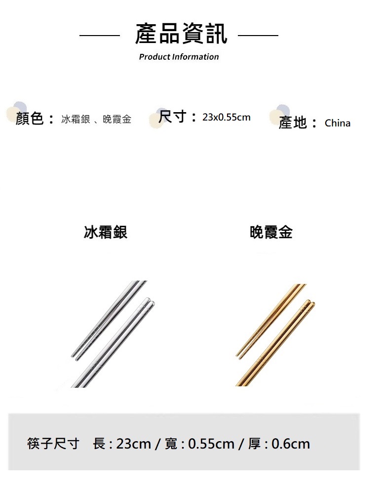 【A&R】簡約輕奢抗菌防滑純鈦筷子餐具 一雙 材質 : 純鈦尺寸 : 23x0.55cm顏色 : 晚霞金產地 : China包裝採用精美絨布束口餐具袋湯叉使用注意事項:- 為避免受傷,請勿拿來玩耍- 請勿讓幼童單獨使用- 家中幼童使用時,需有大人陪同並留意小心安全使用- 請妥善保管於孩童不易取得場所為維持鈦表面美觀,建議清洗後以乾布拭乾,畢免水漬痕跡殘留。鈦餐具商品系列為亮面金屬商品,生產過程會產生細紋乃正常現象。產品尺寸皆為手工測量,因測量方式有所不同,誤差1-2cm屬合理範圍。網頁照片為參考,因拍攝光線與電腦顯示器不同,請以實品為準。+AB33網路購物您享有商品到貨七天猶豫期,隨時解約退貨之權益,但提醒您注意,商品退貨時必須為全新狀態且完整包裝。#A&R #簡約 #輕奢 #抗菌 #防滑 #純鈦 #筷子 #餐具 #一雙 #環保 #健康 #居家 #戶外 #野餐 #露營 #輕量 #環保餐具