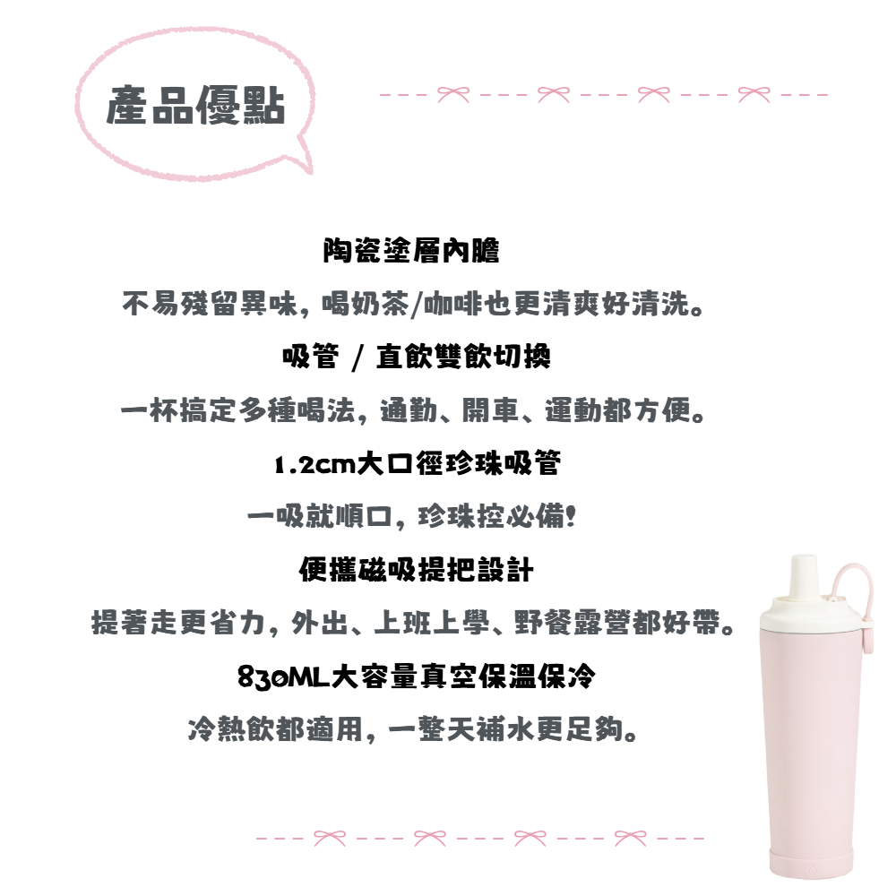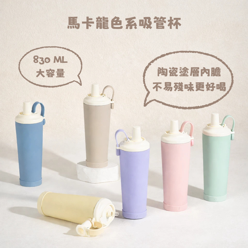#A&R #馬卡龍色 #陶瓷 #塗層 #珍珠奶茶 #吸管杯 #磁吸 #提把款 #Tritan吸管 #830ML #雙飲 #保溫杯 #環保杯 #隨行杯
