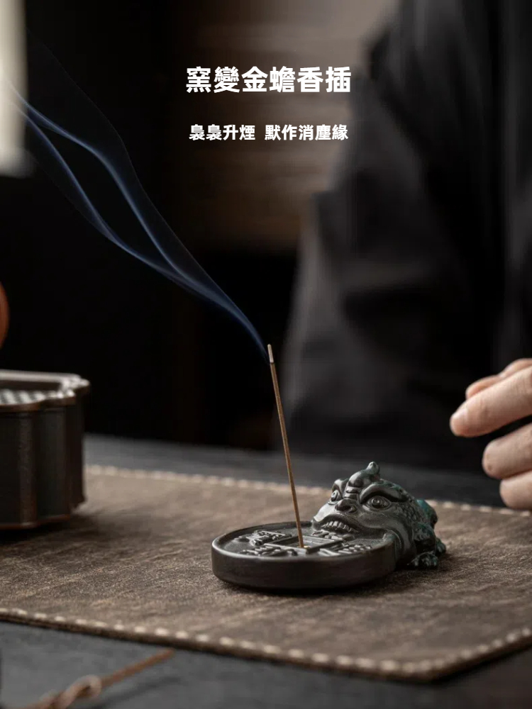 【A&R】招財開運窯變小金蟾香插香爐 - 窯變金蟾