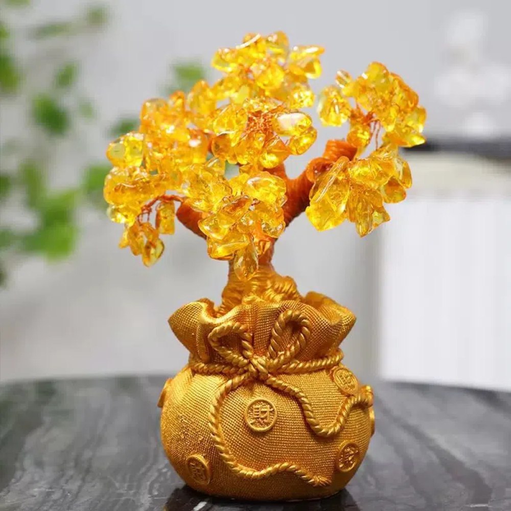 【A&R】招財黃水晶樹 聚寶盆 黃金萬兩小福袋款 附旋轉底座