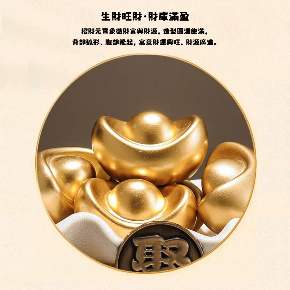 元寶象徵財富匯聚,聚寶盆造型寓意招財進寶、財源廣進,適合居家、店面、辦公室擺放。