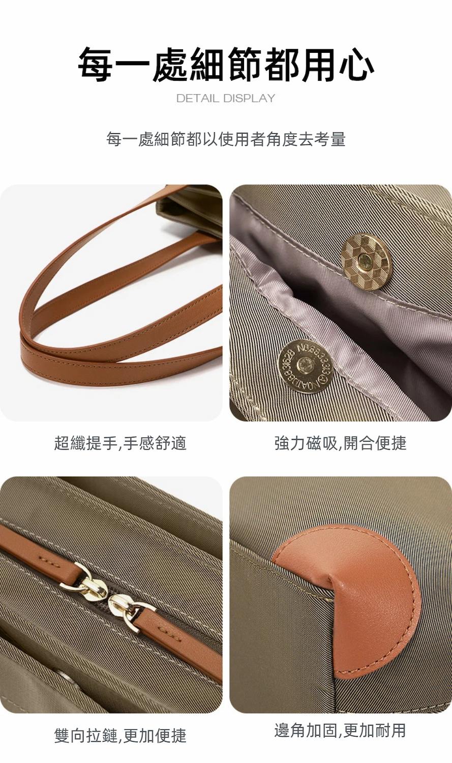 3. 防潑水耐磨尼龍材質 : 日常通勤、出差使用更安心