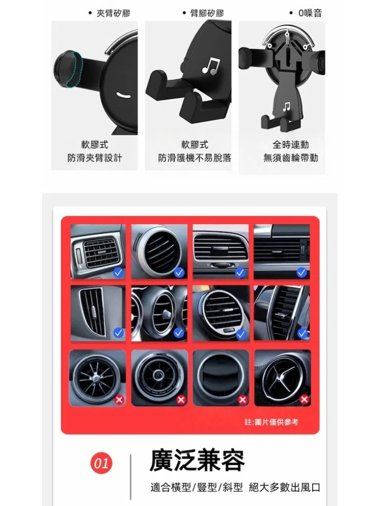 #A&R #360度 #汽車用 #出風口 #手機支架 #穩固防震 #導航車架 #單手操作 #萬向旋轉 #伸縮尾口
