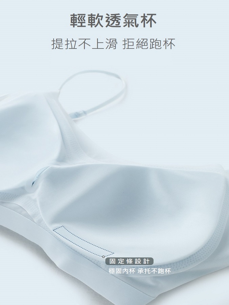【A&R】升級版莫代爾冰絲萊卡超薄細肩帶內衣 尺寸:L材質:50.8%錦綸、49.2%氨綸顏色:冰川藍胸墊:半固定式胸墊肩帶:不可調節肩帶產地:China洗滌方法:輕柔洗滌,若機洗需加洗衣袋,請使用20°C以內溫水洗滌,深色衣物與淺色衣物請分開洗,請勿浸泡。