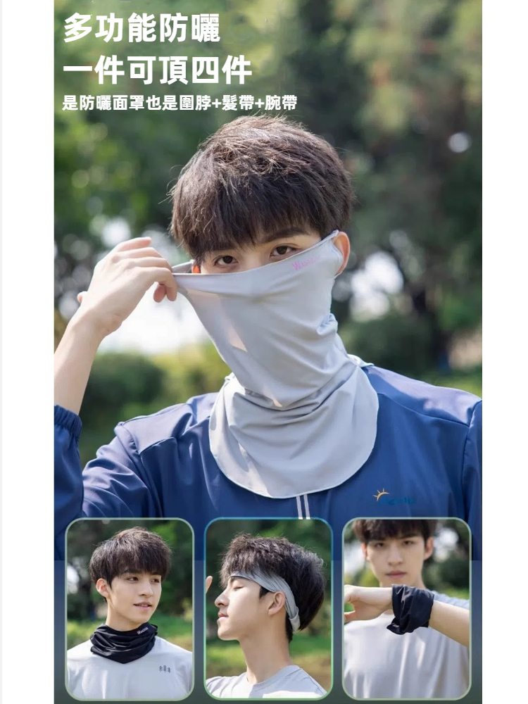 【A&R】夏季抗UV防曬冰絲圍脖掛耳 面罩 男女適用 - 白色