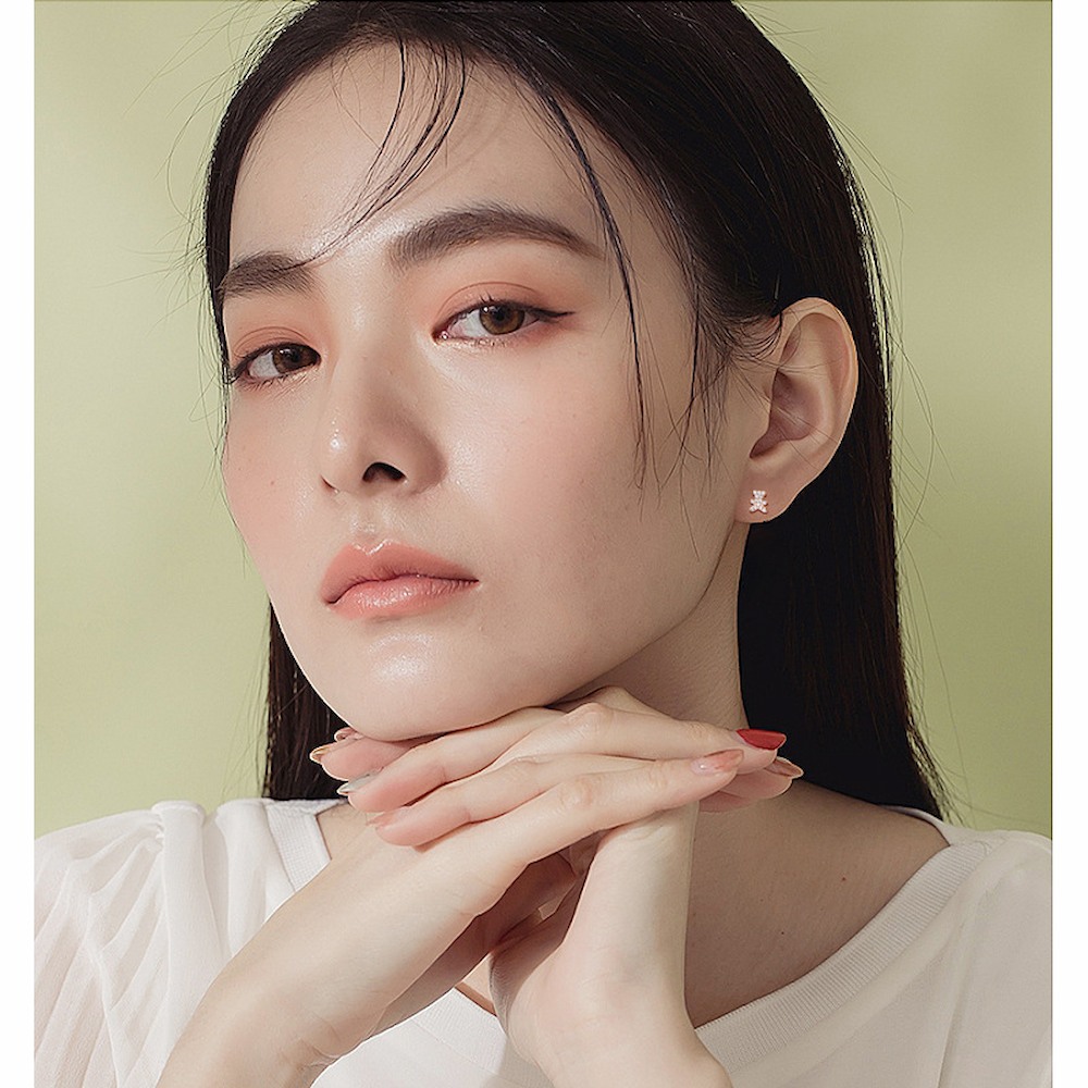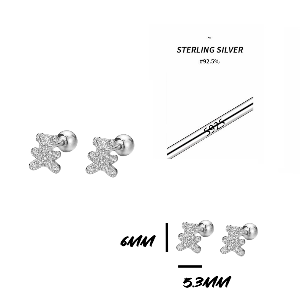 韓版s925純銀迷你小熊熊轉珠耳環 -白金小熊 附馬卡收納盒
