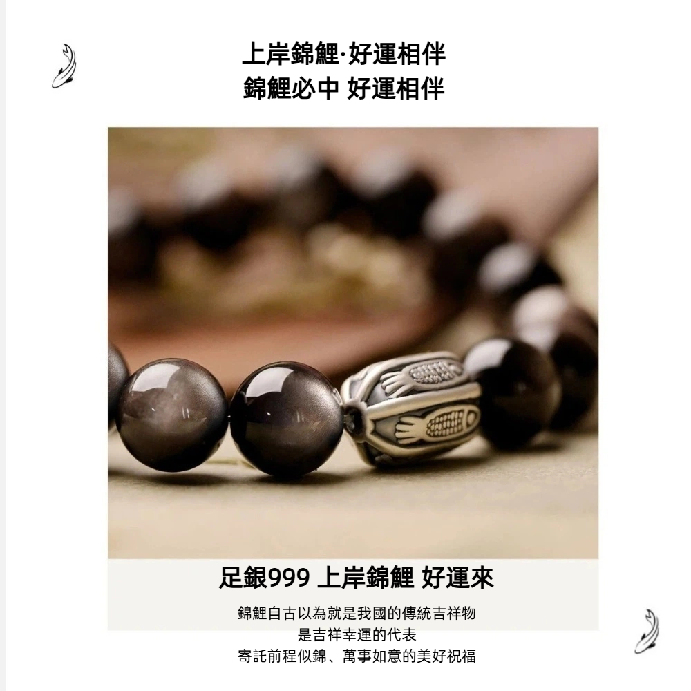 #A&R #招財 #轉運 #S999純銀 #黑曜石 #好運上岸 #手鍊 #12MM #錦鯉 #精美禮盒 #男款 #中性 #避邪 #擋煞 #排除負面能量 #招好運氣