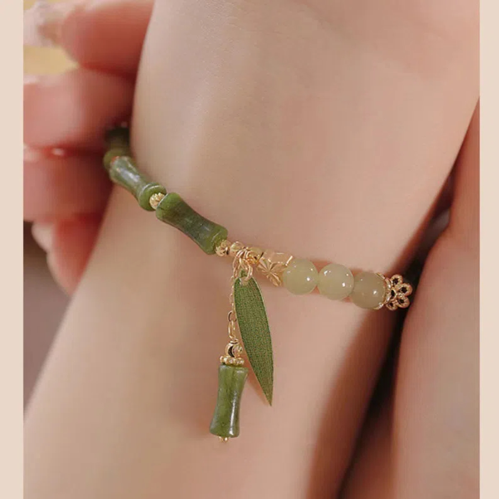 【A&R】招財開運 天然和田玉+竹節橄欖石手鍊附精美禮盒
