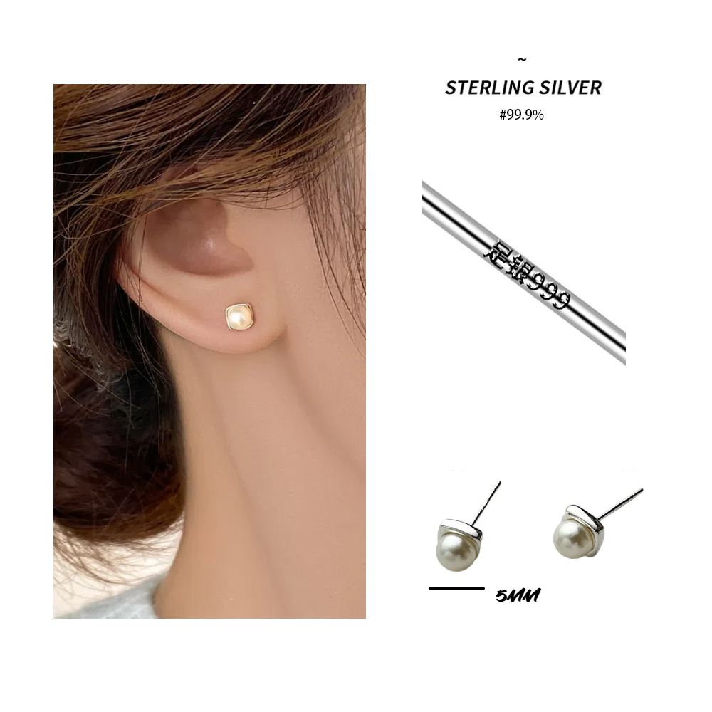 #S999純銀 #韓系 #氣質 #淡水珍珠 #方形 #耳針款 #耳環 #矽膠耳扣 #抗過敏 #養耳洞 #生日 #情人節 #禮物