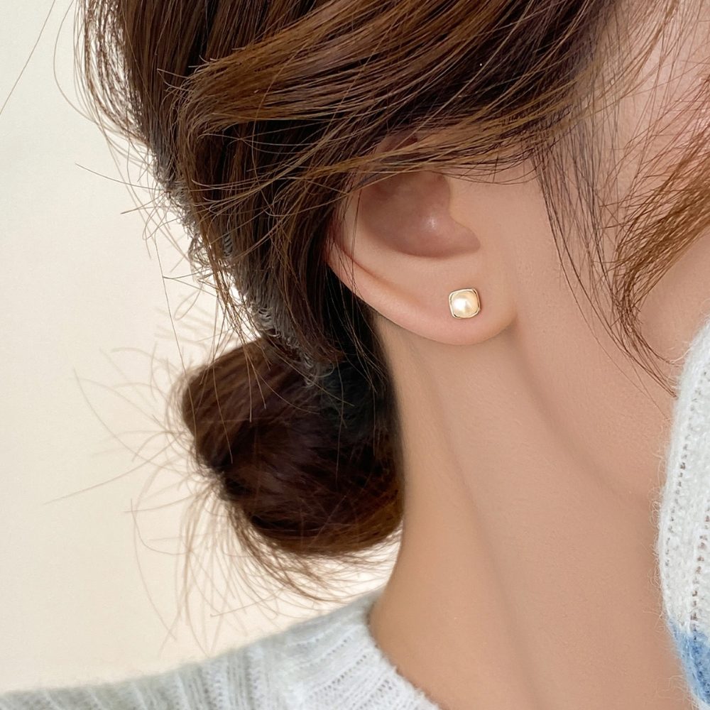 S999純銀韓系氣質淡水珍珠方形耳針款耳環