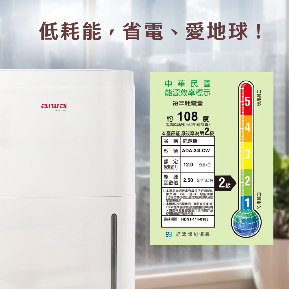 AIWA 愛華 12L 負離子清淨除濕機 ADA-24LCW