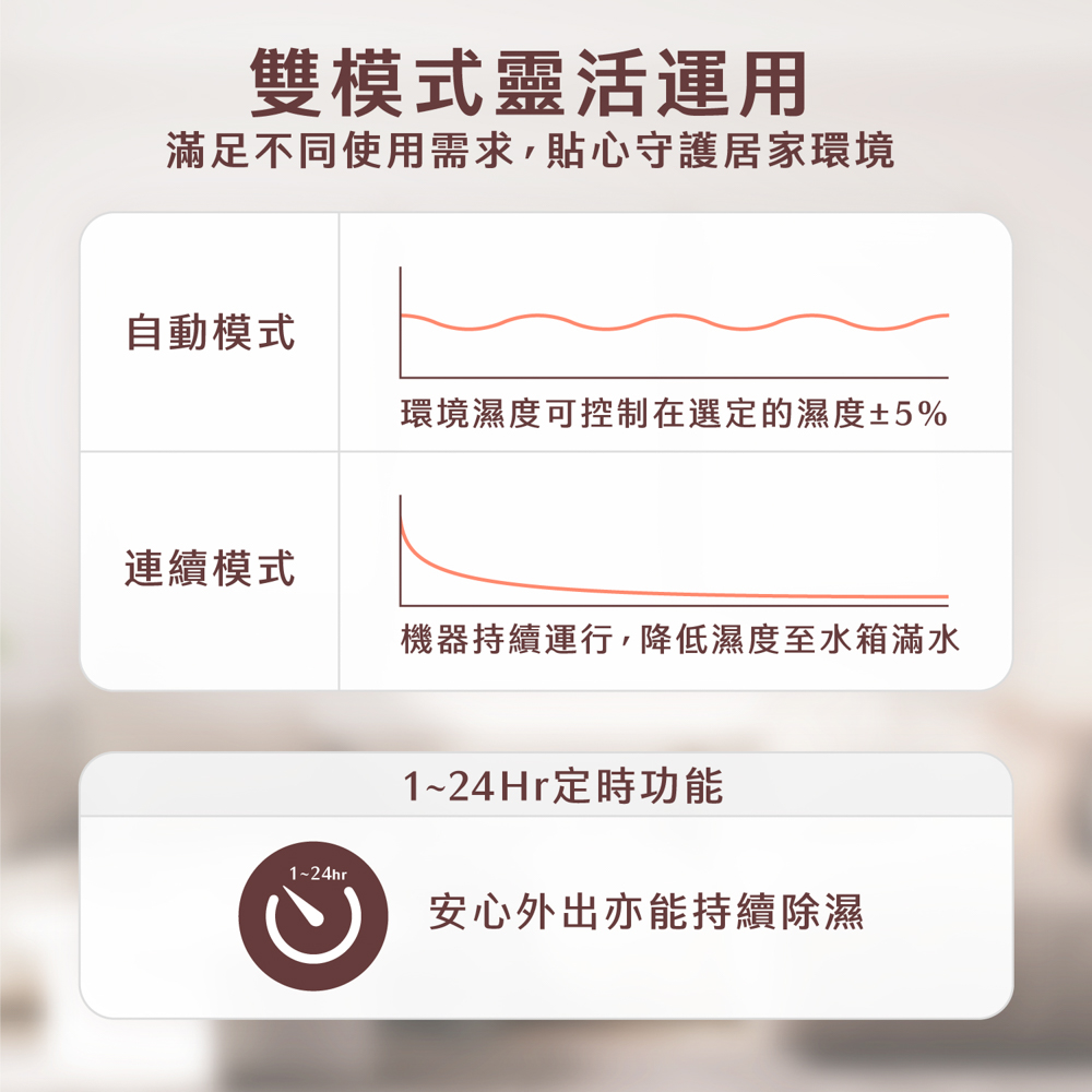 .除濕量12L/天.自動濕度傳感器.4L容量大水箱.1-24小時 開/關定時器.多段濕度可選.機內乾燥除溼除黴