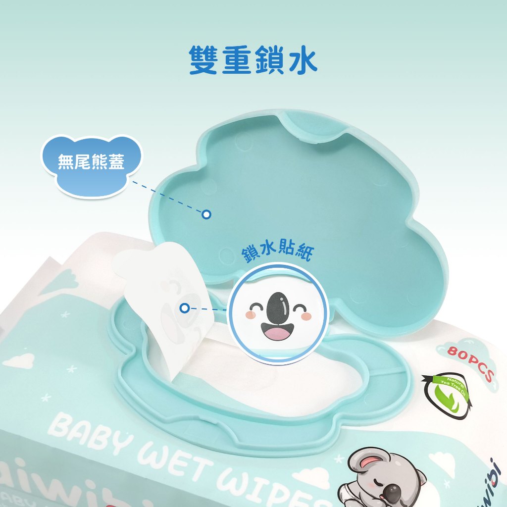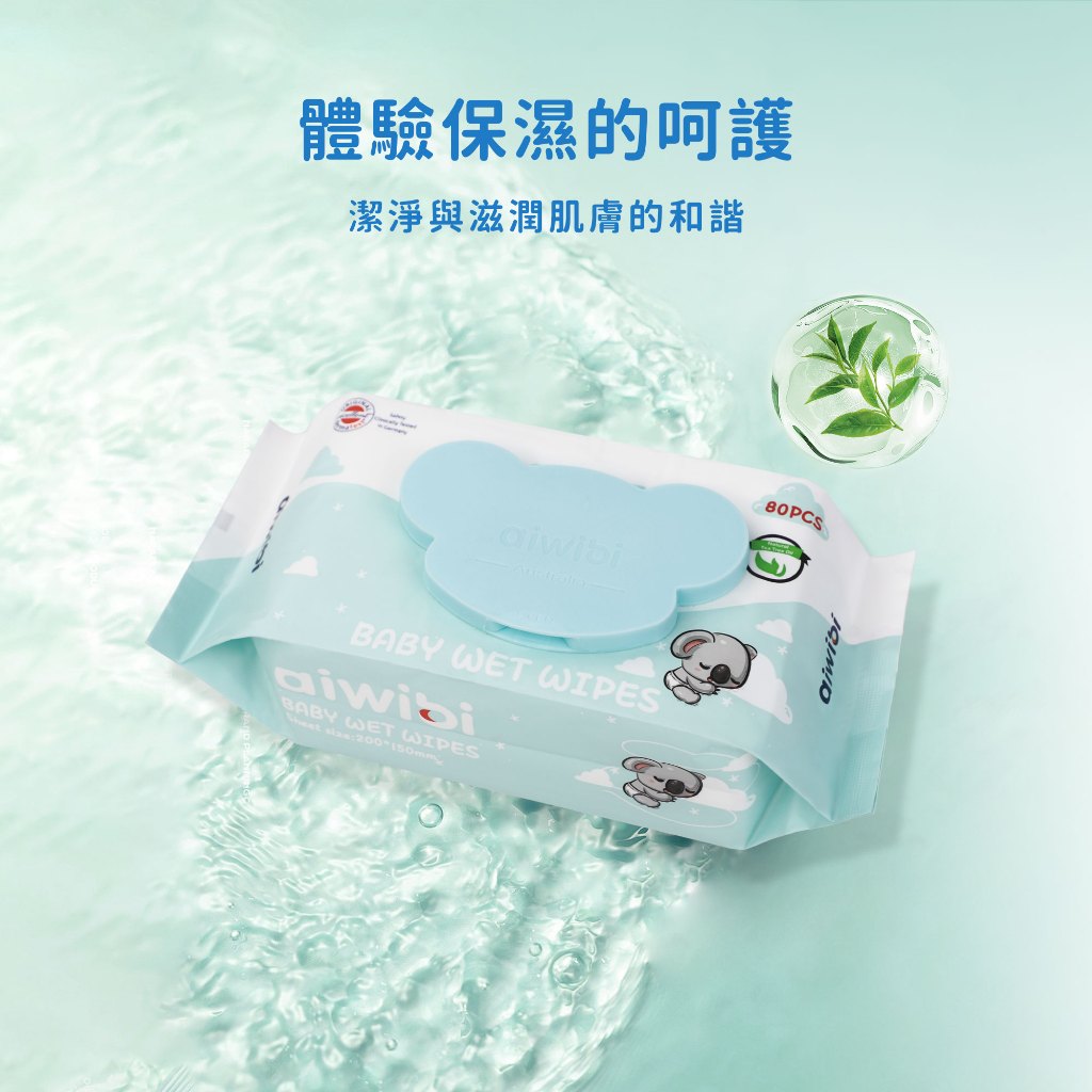 Aiwibi 嬰兒濕紙巾 80抽9包入 濕紙巾 純水濕巾 濕巾 敏感肌適用 天然茶樹精油 加厚款 無酒精