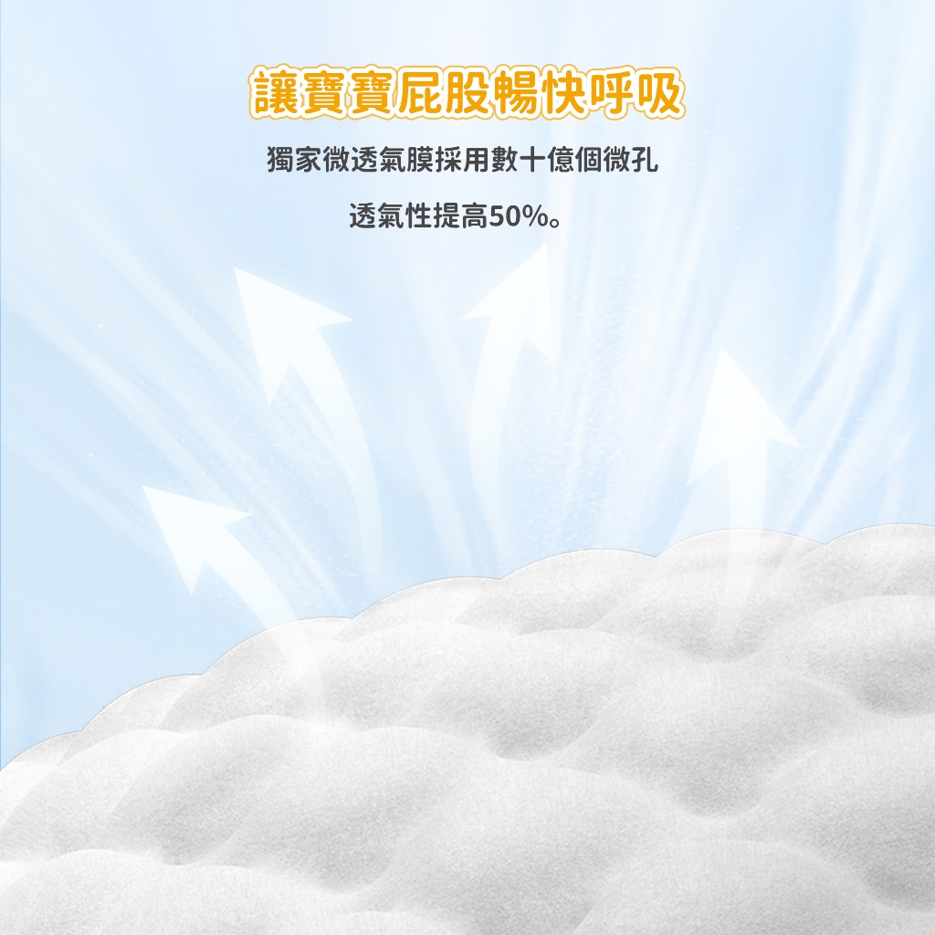 🔥 產地:中國🔥 保存期限:3年🧡 *產品特點介紹:1,面層SilkySoft Fabric™我們的 SilkySoft Fabric™ 採用 1.2D 纖維製成,比人類頭髮細十倍,觸感如羽毛般柔軟絲滑,帶來極致舒適感。2,PE膜(技術)獨家 MicroAiry Film™,設計有數十億個超細微孔。這種透氣 PE 薄膜可讓空氣自由流動,同時防止水通過,使透氣性提高 50%3,芯體(技術)採用雙重芯體吸收技術,天然木漿加速吸收,而日本住友 SAP 確保最大容量,將吸收率提高 50%,提供卓越的夜間保護4,護圍增強型雙重防漏保護我們的防漏保護採用 45 毫米雙重屏障和腿部袖口折疊設計,可提供卓越的側漏保護5,吸尿量長達 14 小時的保護2 秒鐘瞬間鎖住液體,採用獨特的 Dual Absorbent Core™,可快速吸收水分並容納高達 2000 毫升。提供整夜保護和持久舒適,讓您的寶寶保持乾爽無洩漏6,腰圍(技術)Comfort Fit Waistband™轉為完美貼合設計,緊貼寶寶腰部,不會緊繃。貼身舒適,不會壓迫寶寶腹部,保持安全。7,魔術貼可重複固定的魔術貼這款魔術貼採用 3M 防水材質製成,具有數千個蘑菇形掛鉤,可牢固地抓住前腰帶,可承受高達 45N 的拉力以防止掉落。8,面層紋路3D珍珠圖案減少皮膚接觸面積和摩擦,透氣性提高30%,同時溫柔呵護寶寶嬌嫩的肌膚9,尿顯遇尿時顏色會從黃色變成綠色,可以快速輕鬆地知道何時需要更換