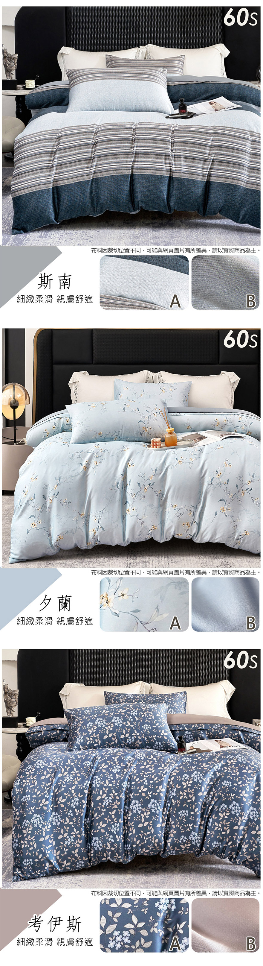 蘭精公司 100%天絲™萊賽爾纖維柔滑舒適-如真絲般的享受。選用60支(300織紗)高支高密的萊賽爾纖維布料;觸感更勝40s天絲。細緻、柔滑、高光澤度、絲般的垂墜感令人愛不釋手。原廠天絲具有優異的含水度;布料滑順細緻;讓我們接觸皮膚時;明顯感受天絲的舒爽感。頂級300織高織紗數萊賽爾天絲;採用簡潔床包枕套設計,搭配四季皆宜的兩用被。具備舒適爽涼透氣性好的絕密觸感;是您不可錯過的優值體驗。◆商品內容說明商品內容物:特大床包x1件、美式枕套x2個、鋪棉兩用被套x1件;共四件/組。內容物尺寸:美式枕套:1.5 x 2.5 尺 ( 45 x 75 ±3 公分 )特大床包:6 x 7 尺 ( 180 x 210 ±3 公分 );可包覆床高35公分鋪棉兩用被套:6 x 7 尺 ( 180 x 210 ±3 公分 ) 可裝入冬季被胎 表布材質:100% 萊賽爾纖維 (蘭精™天絲™品牌)支數60S 紗織數300織(60*60/200*100)鋪棉材-填充物100%聚酯纖維棉產地:床包、枕套:台灣製造 兩用被套:中國製造保養方式:◎商品可水洗、機洗。◎建議清洗時可放入大型洗衣袋後再清洗,同時,清洗時淺色的要與深色分開洗滌,避免顏色互染。◎勿使用漂白劑洗滌。◎可低溫熨燙。◎正常請洗程序即可。顏色:如圖,網頁產品因拍攝關係,與實品略有差異,實品顏色更佳 。產品圖僅供參考,不含拍攝道具,實際內容以包裝規格為主。※因布料裁切位置的不同,部份花版可能會與商品圖略有出入,請以收到的實品為主。◆注意事項:網路購物享有鑑賞期,非試用期,個人衛生用品,經拆封使用後恕不接受退換貨。(請於鑑賞期內確定尺寸規格無誤再使用)商品如經拆封、使用、下水、或拆解以致缺乏完整性及失去再販售價值時,恕無法退貨!