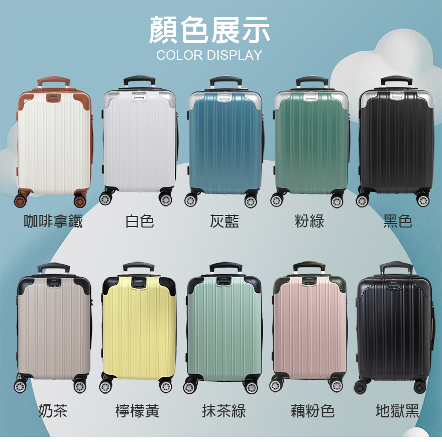 特色:PC+ABS磨砂、隱藏式杯架、後背防磨腳座、防爆雙層拉鏈、掛包扣、TSA海關鎖、雙內裡隔網、雙X型束帶、鋁合金拉桿、60mm避震雙排輪、加大15-30%
