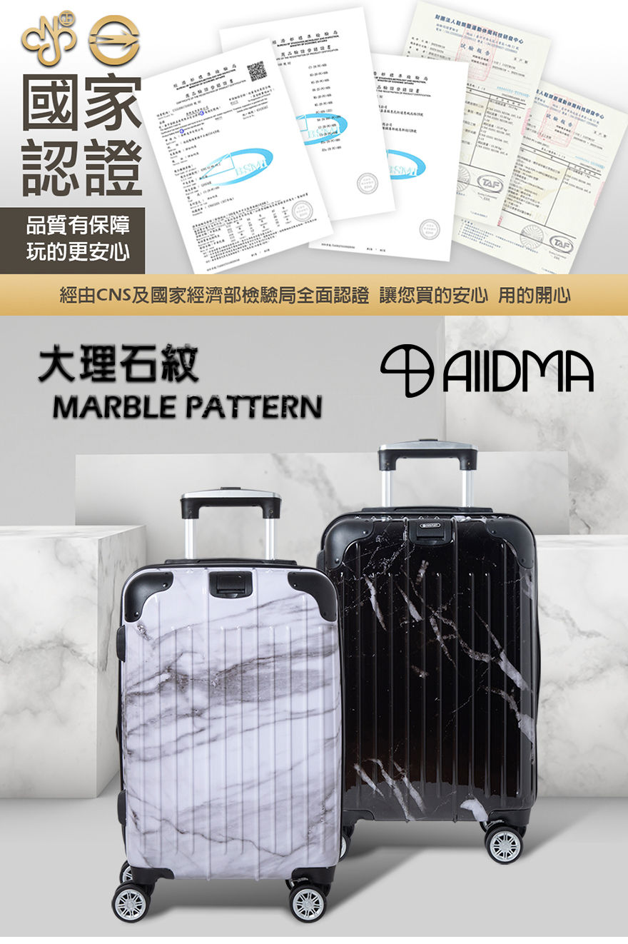 特色:PC+ABS防爆拉鏈、掛包扣、雙內裡隔網、雙X型束帶、TSA海關鎖、鋁合金拉桿、360度飛機輪、加大15-30%