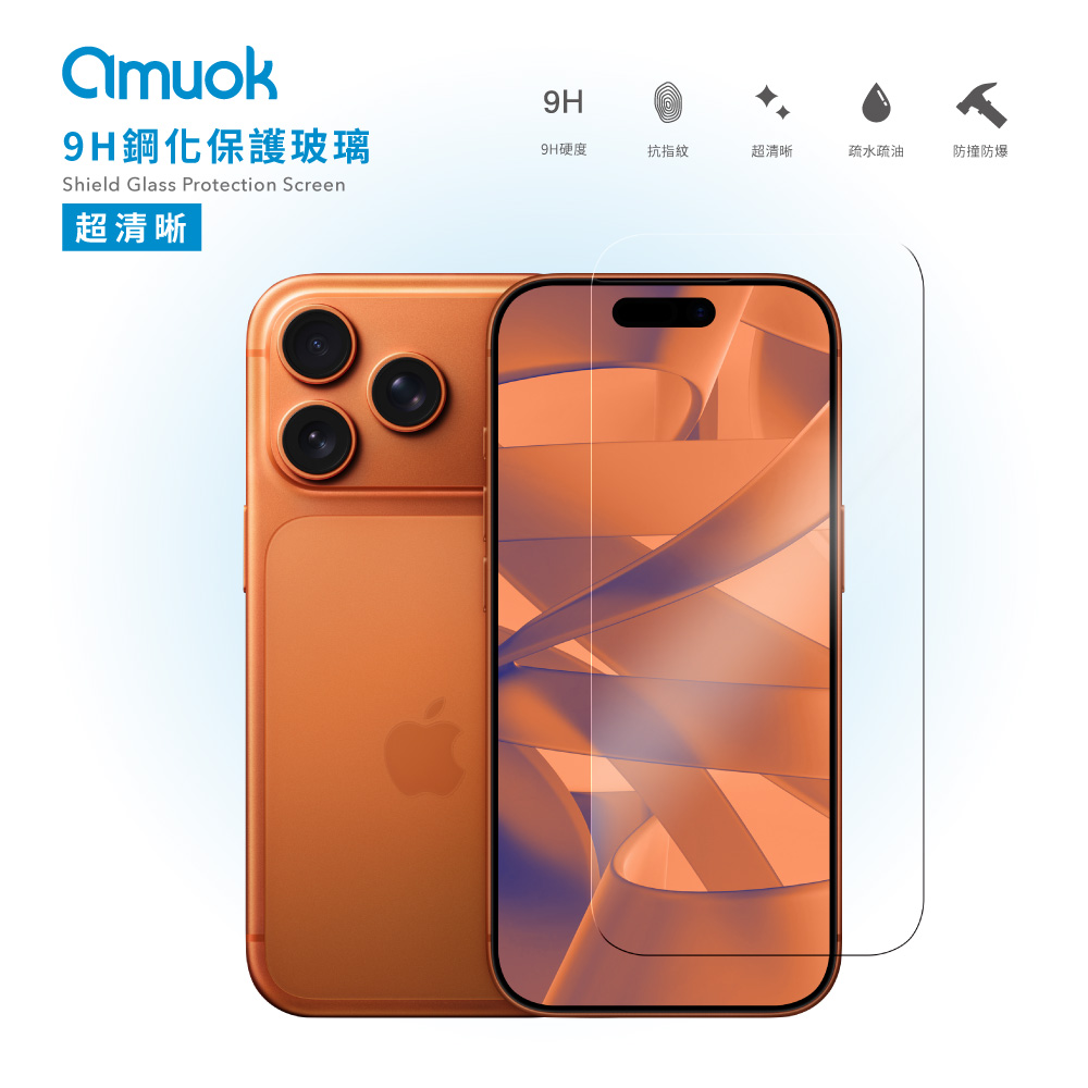 【amuok】Glossy Tempered Glass Screen Protector for iPhone 17/iPhone 16 Pro