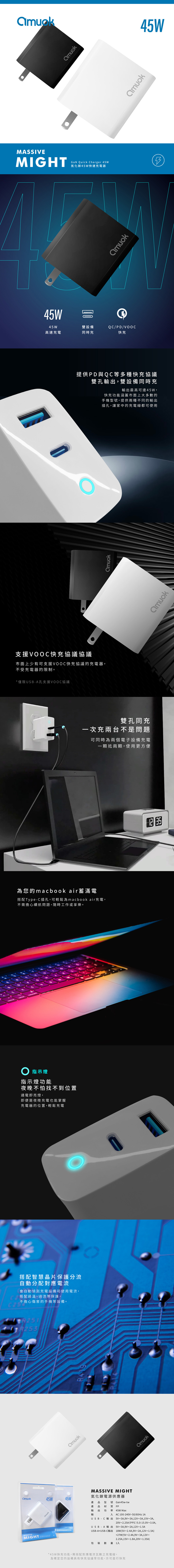 【amuok】45W GaN 氮化鎵充電器 USB+Type-C 電源供應器