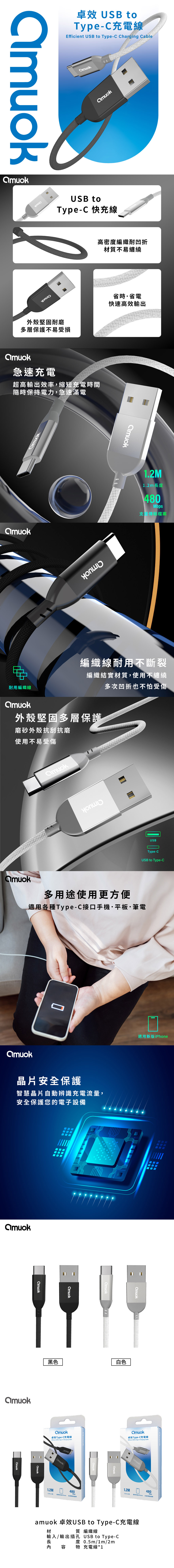 【amuok】卓效 USB to Type-C充電線(120公分)