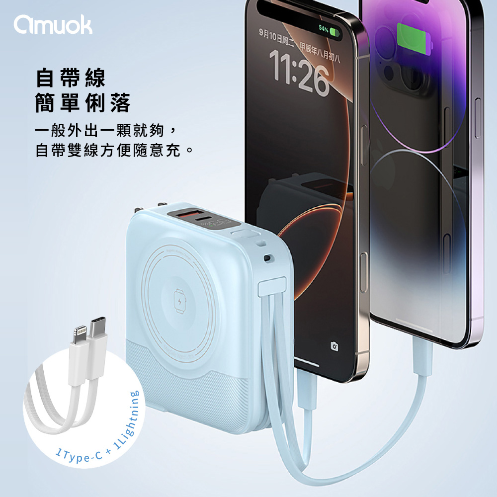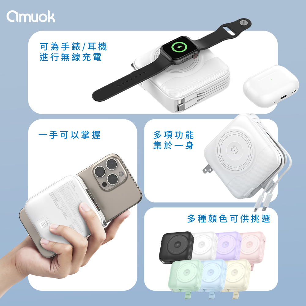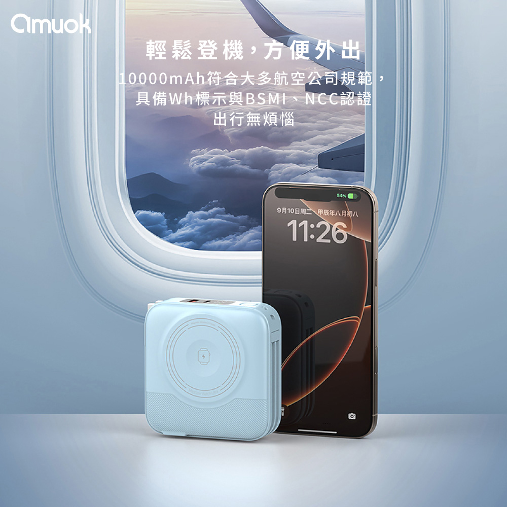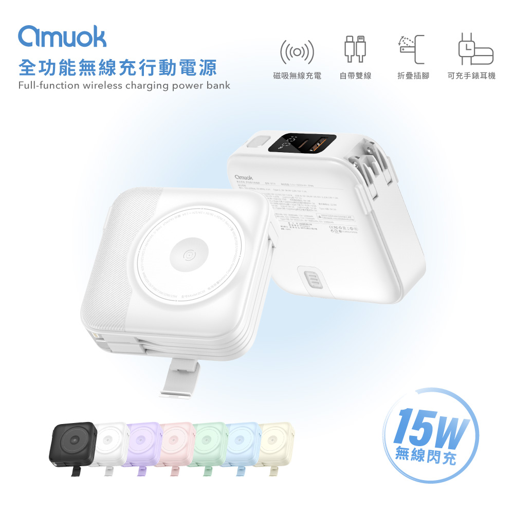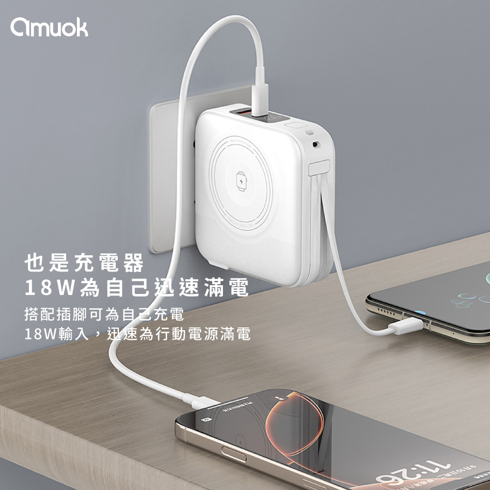 【amuok】10000mAh All-in-one Wireless Charging Power Bank(Black)