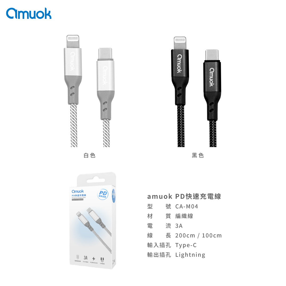 【amuok】PD Speed Charger Cable Type-C to Lightning-1M(White)