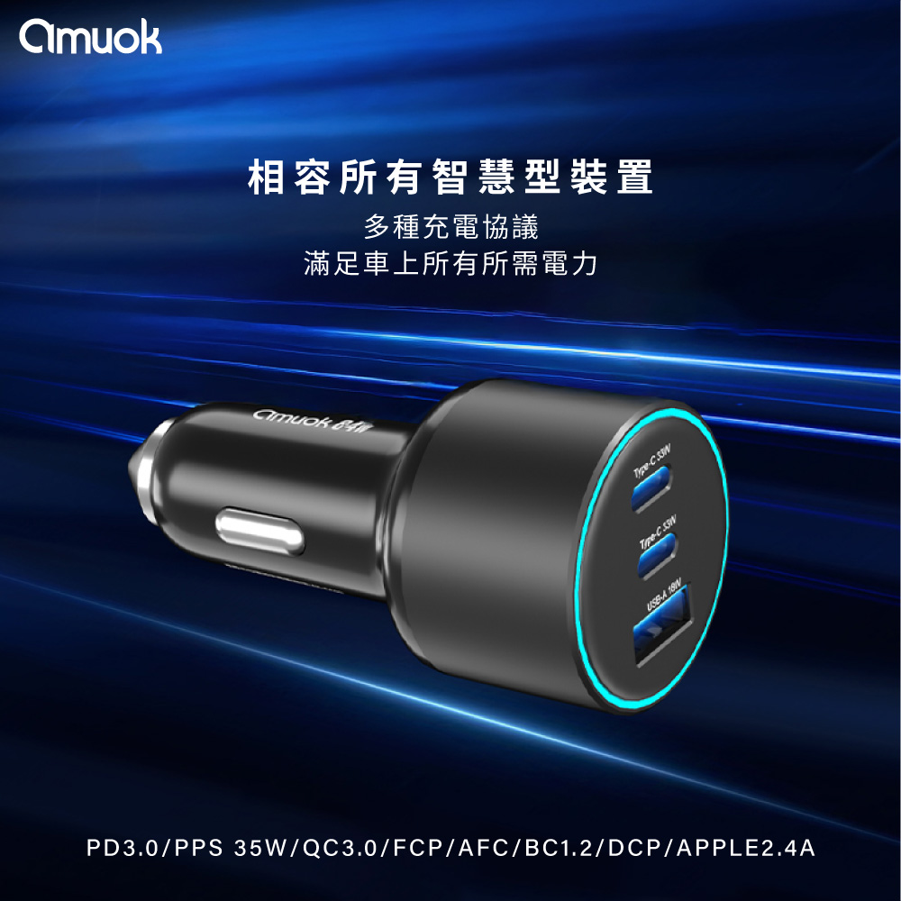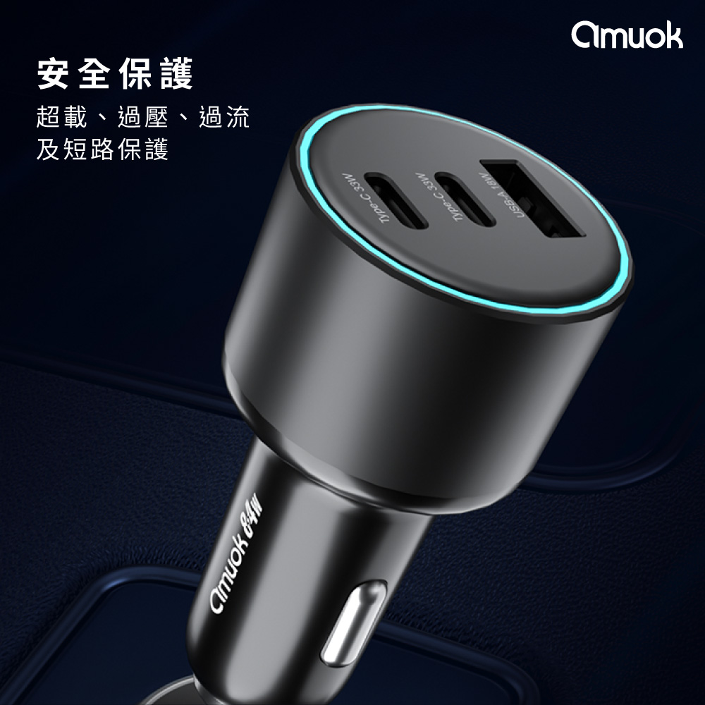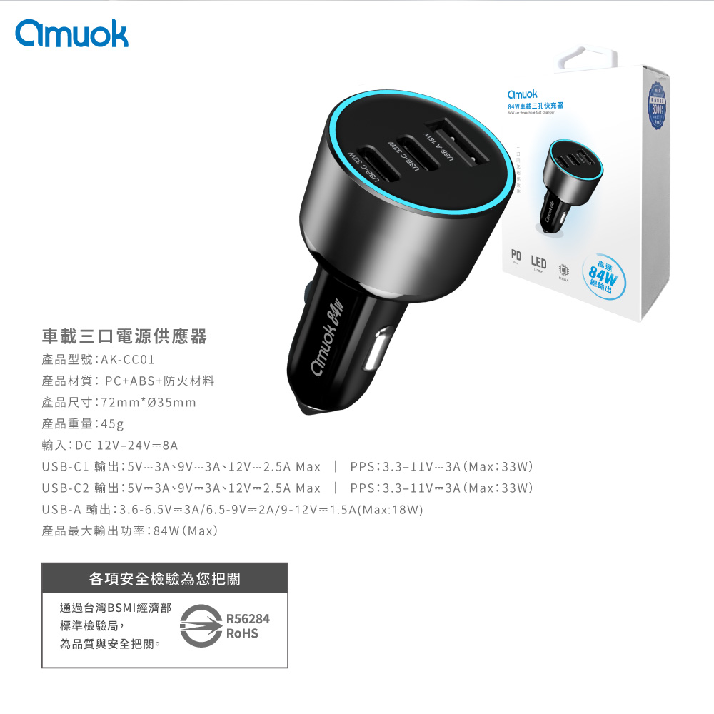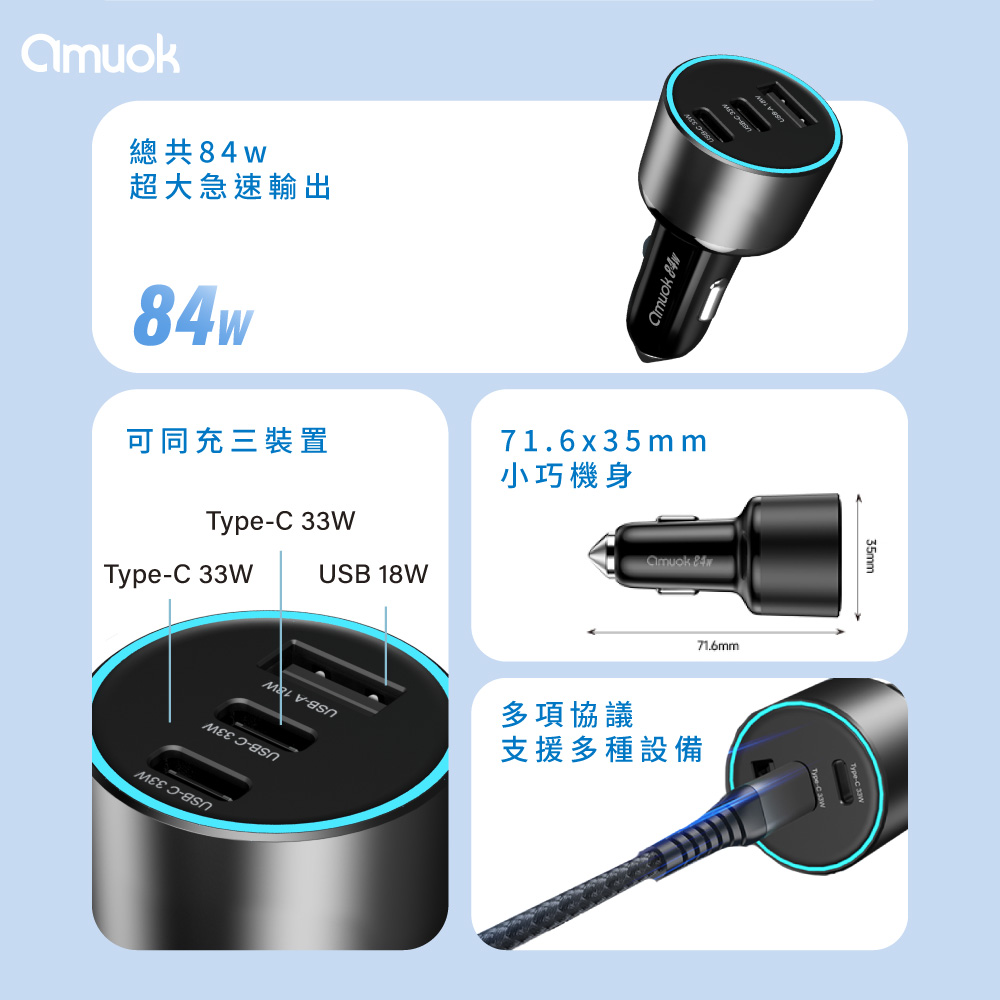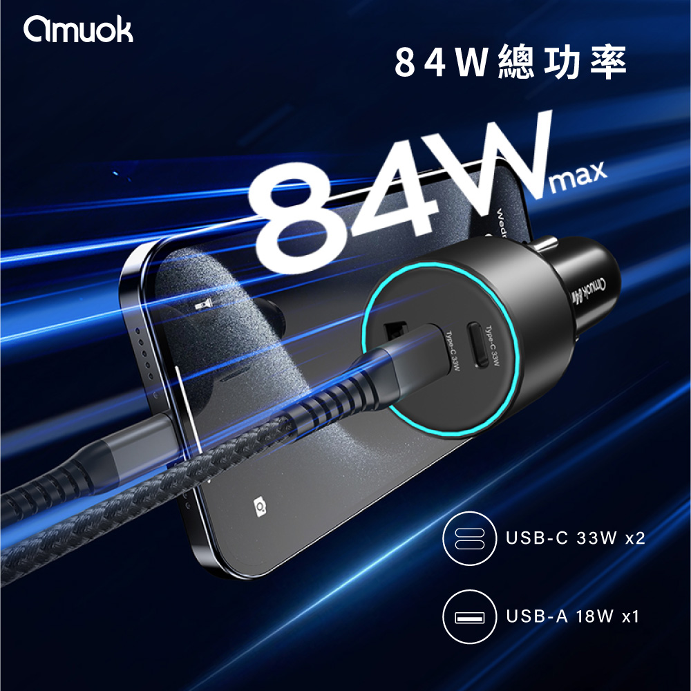 【amuok】84W Car 3-Port Fast Charger(Black)