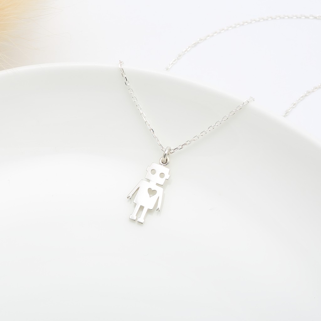 【Angel & Me】Cute Robot s925 sterling silver necklace Birthday gift