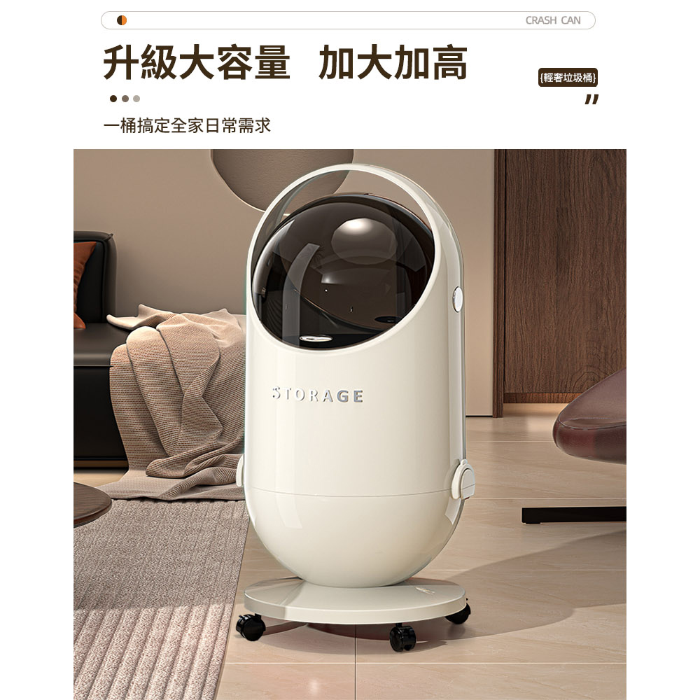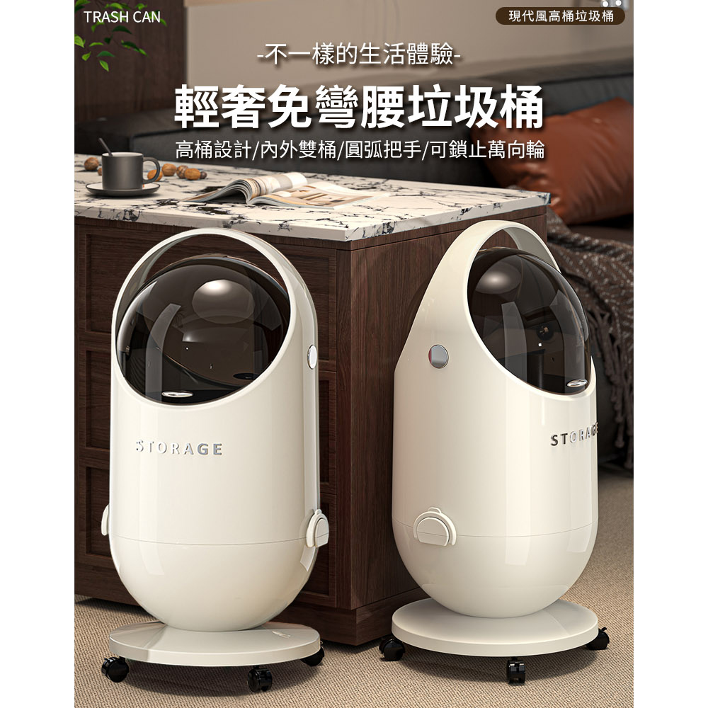 免彎腰垃圾桶 附輪設計 方便移動 雙向開蓋 垃圾不外漏尺寸:28*28*58cm±3% 材質:PP+PC