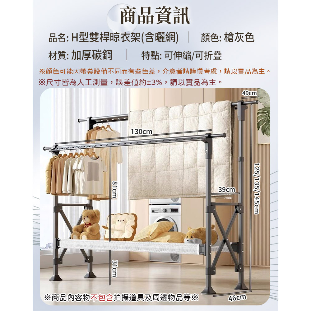 【AOTTO】H型雙桿附輪伸縮升降折疊曬衣架(HA-033)