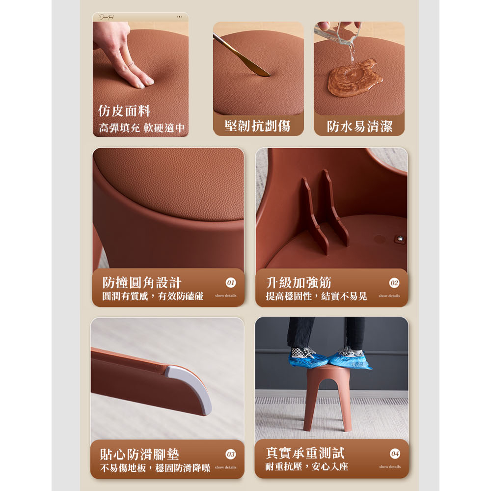 【AOTTO】莫蘭迪貓抓皮加厚疊加圓凳椅凳-2入奶茶色(ID-002C*2)