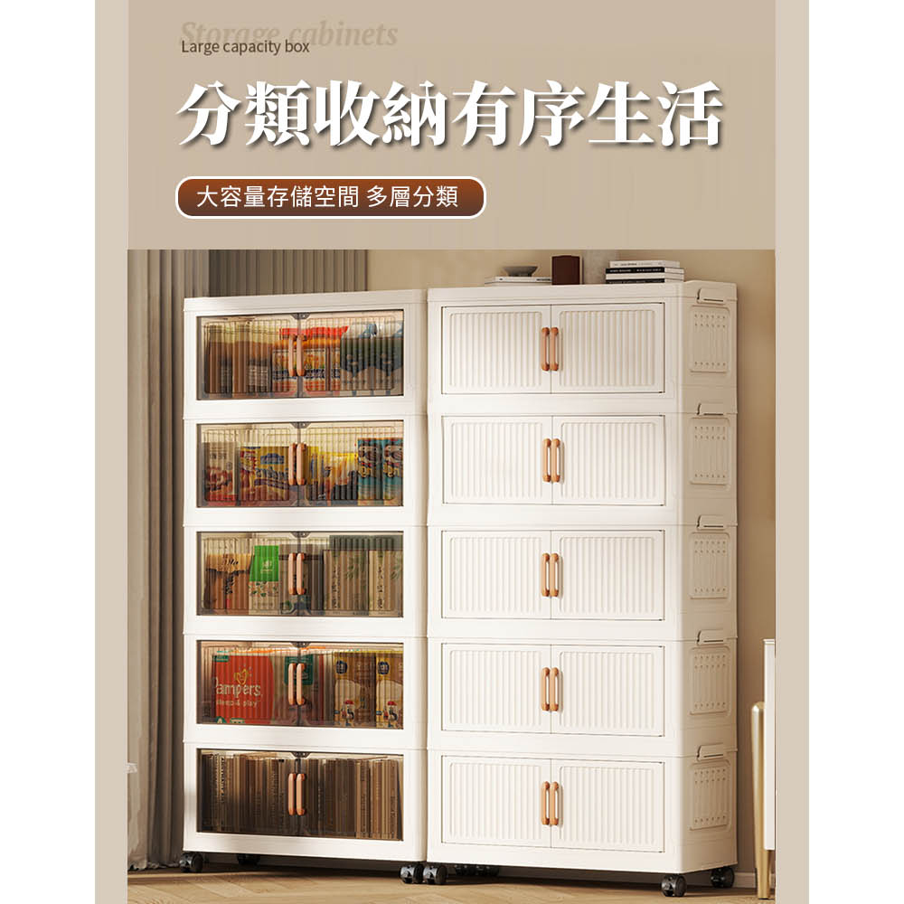 【AOTTO】80面寬五層摺疊附輪雙開門收納櫃(AC-080W)