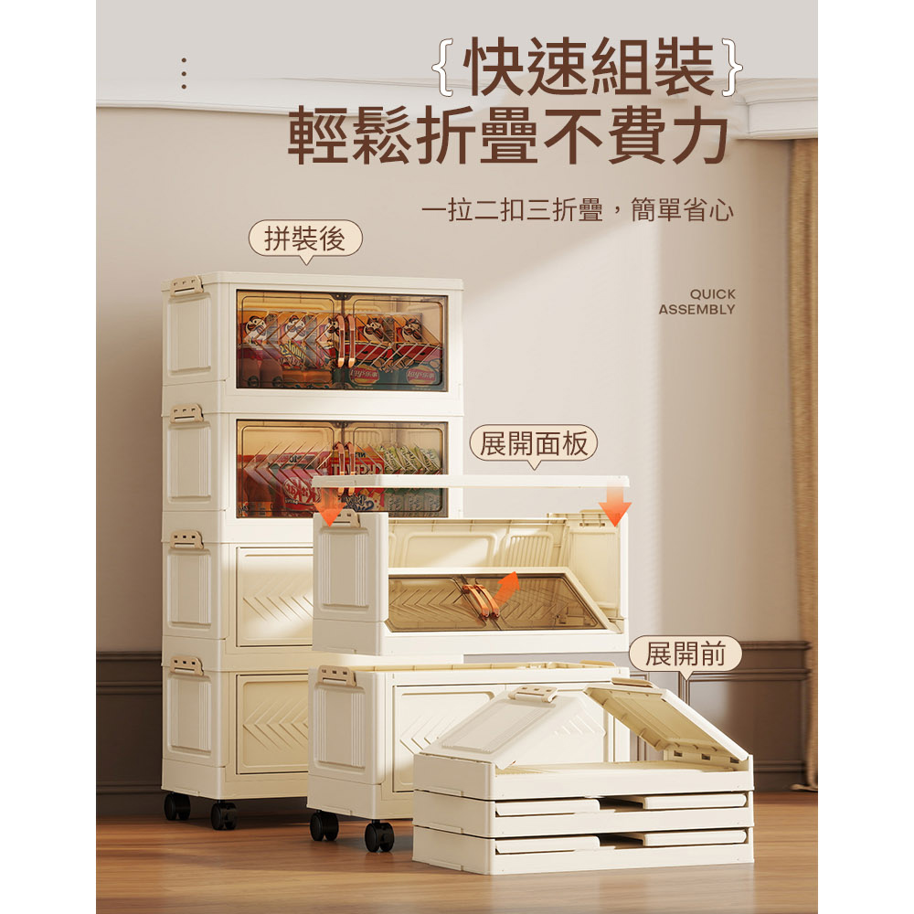 磁吸開門 透明可視 側邊卡扣 穩固不搖晃 附萬向輪 便捷移動尺寸:50*26*120cm±3%