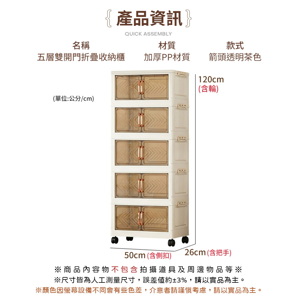 【AOTTO】50面寬雙開門透視磁吸五層折疊收納櫃(AC-5015)