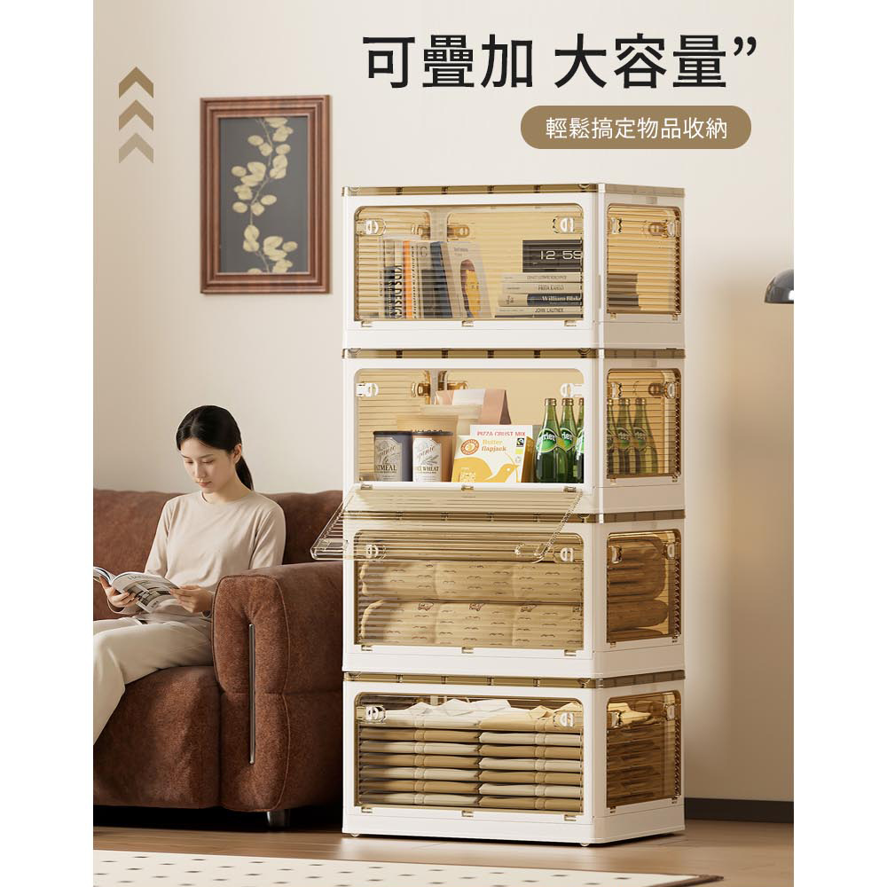 【AOTTO】72L升級加厚款五開門可疊加折疊收納箱-黃色4入(AL-260Y)