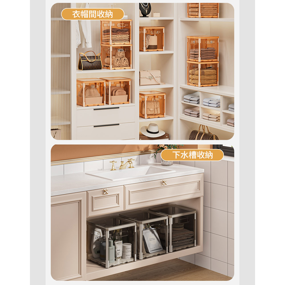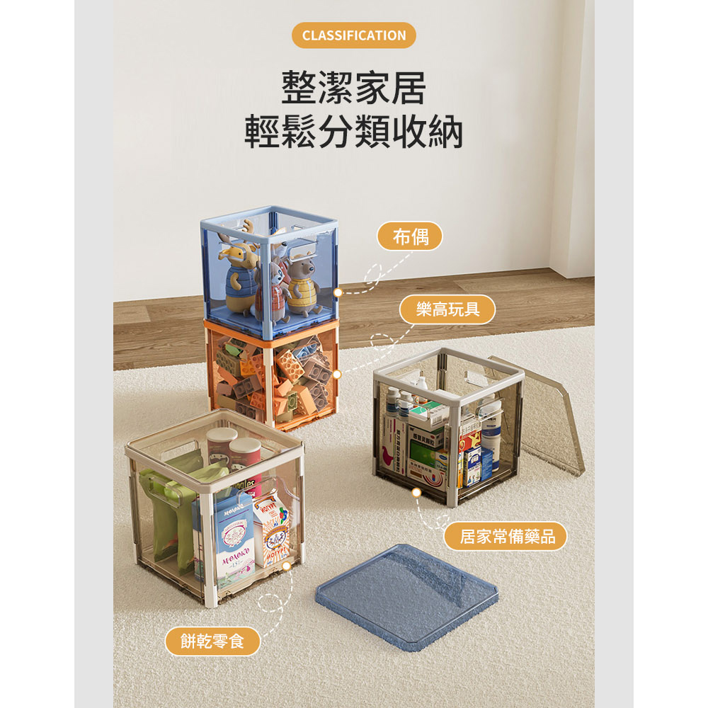 自由疊加 不佔空間透明可視 快速找物四面把手 便捷搬運尺寸:26.7*26.7*26.7cm±3%材質:PET