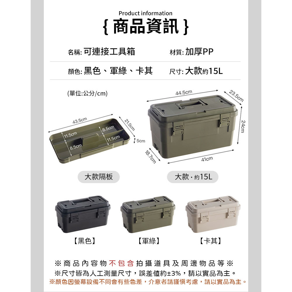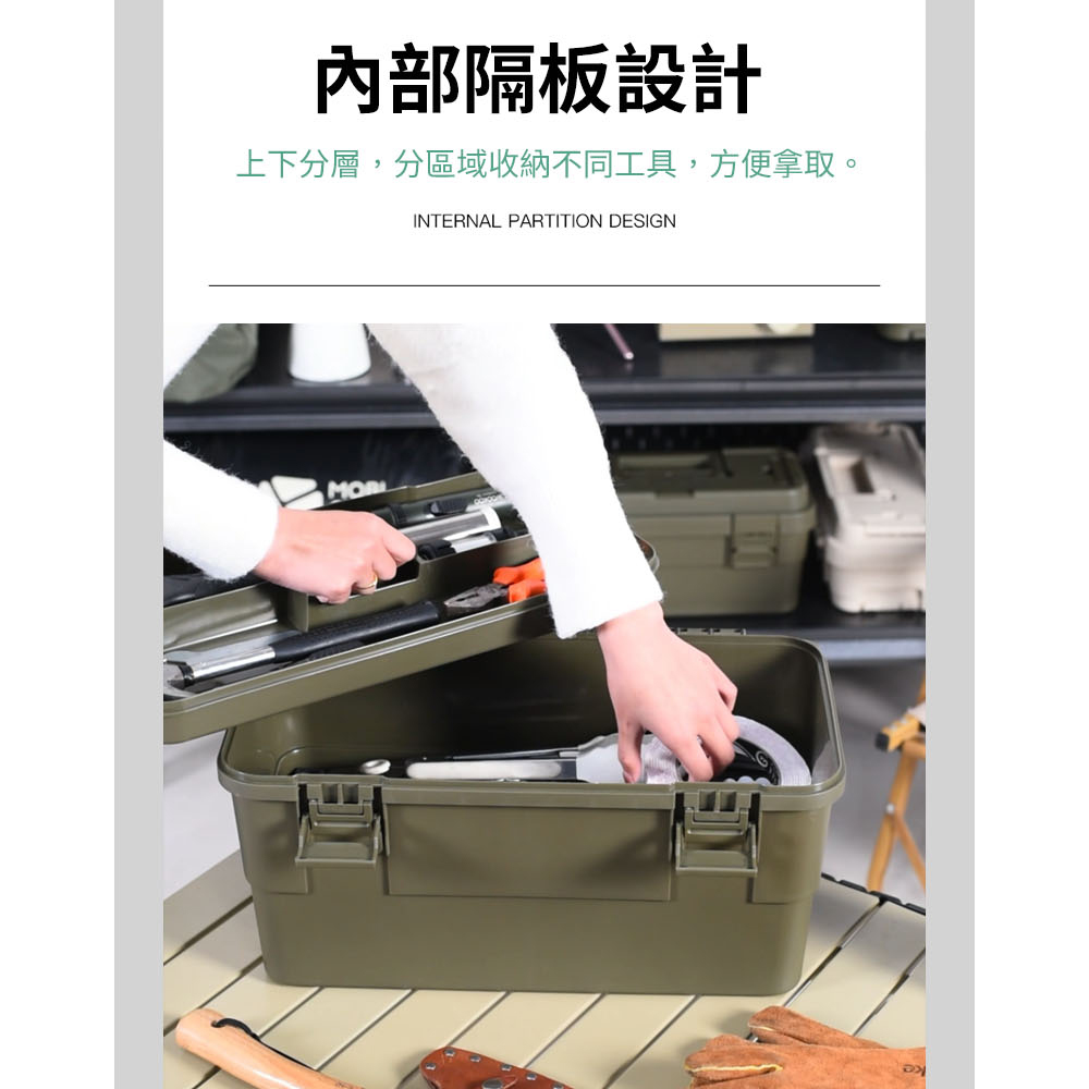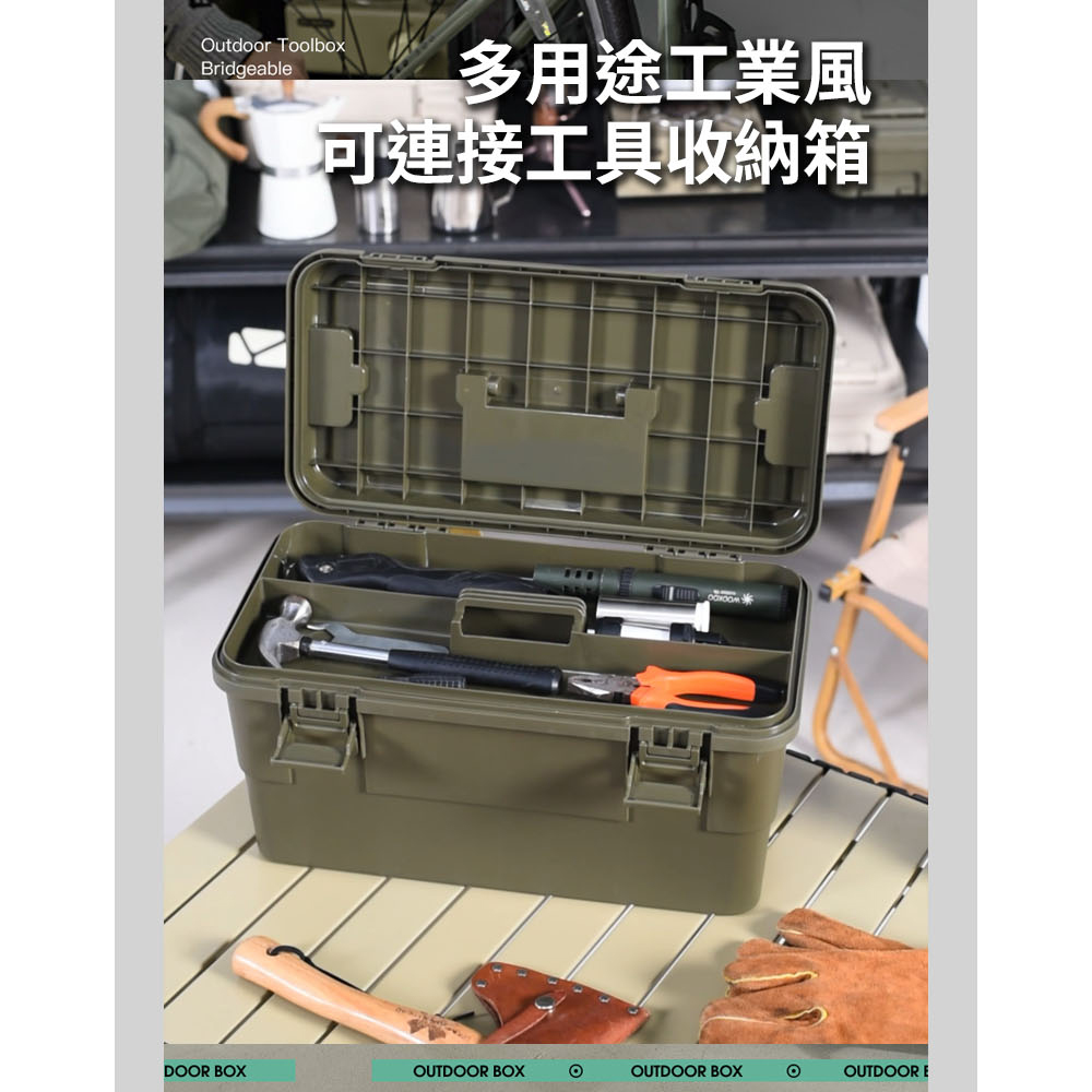 【AOTTO】15L多功能加厚軍規可疊加工具收納箱(AL-2033GN)