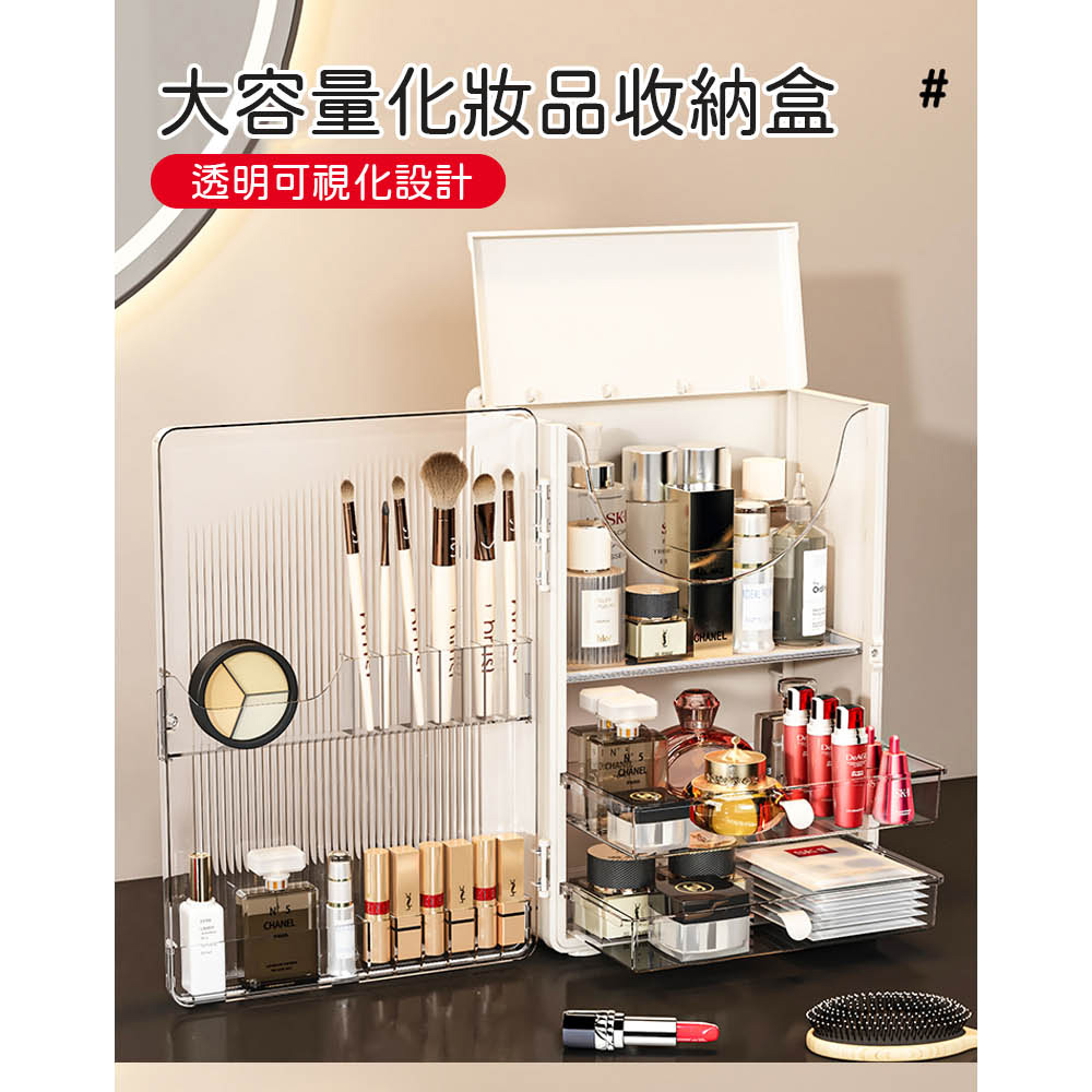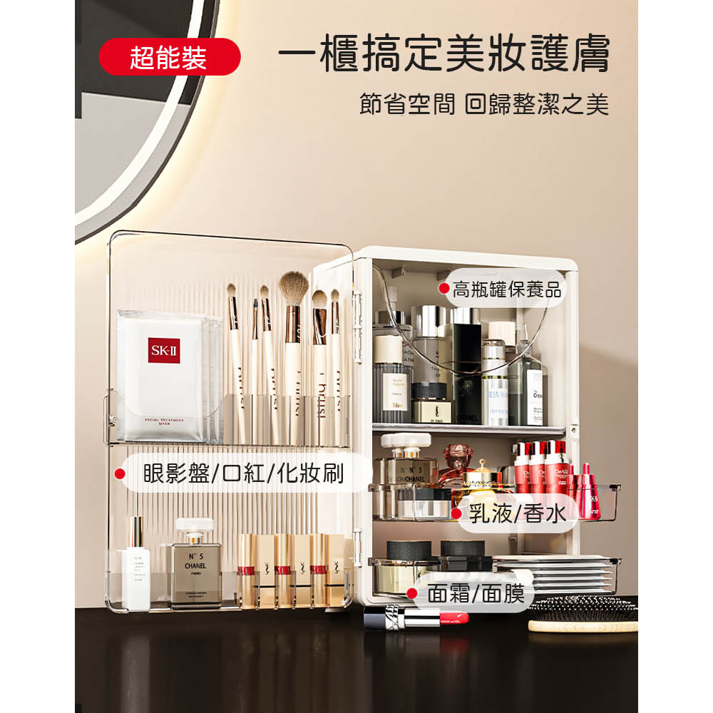 【AOTTO】奶油風雙層折疊化妝品收納盒(AL-2207)