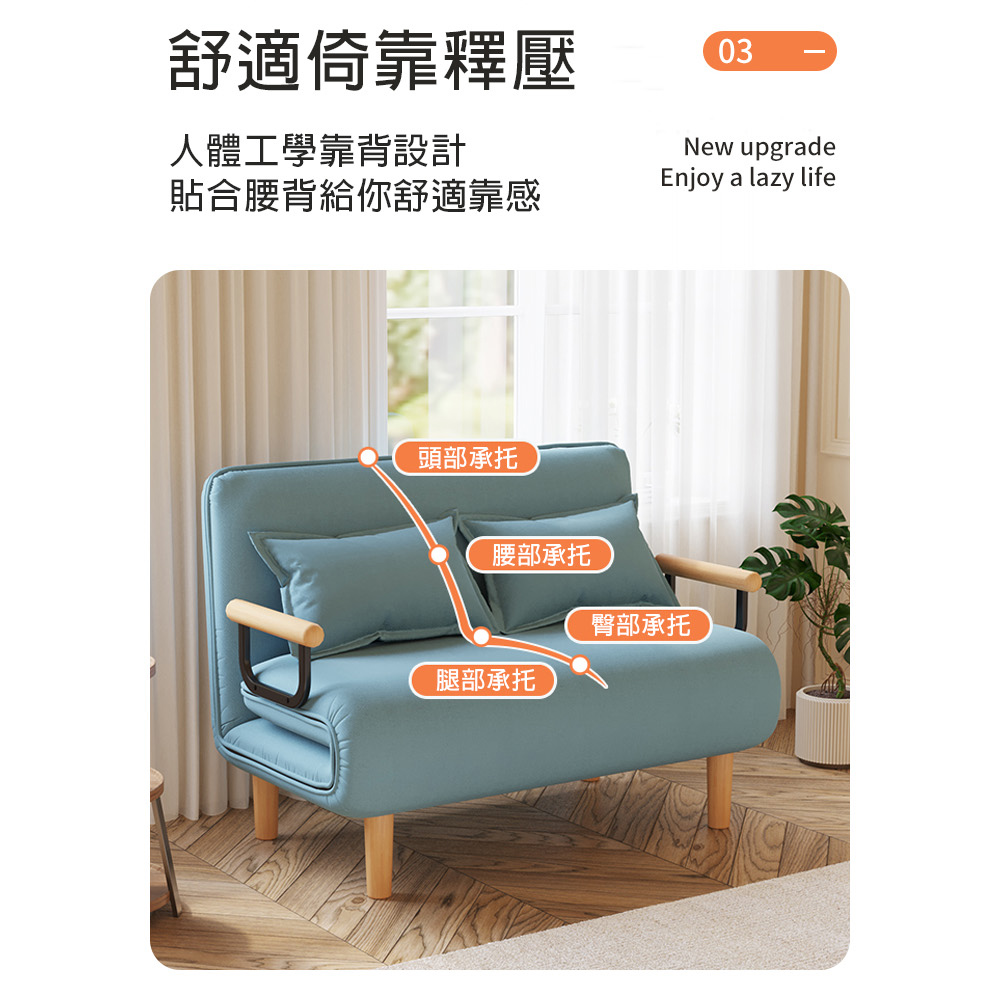 【AOTTO】120公分特大款多功能懶人折疊沙發床-藍色(SF-005B)