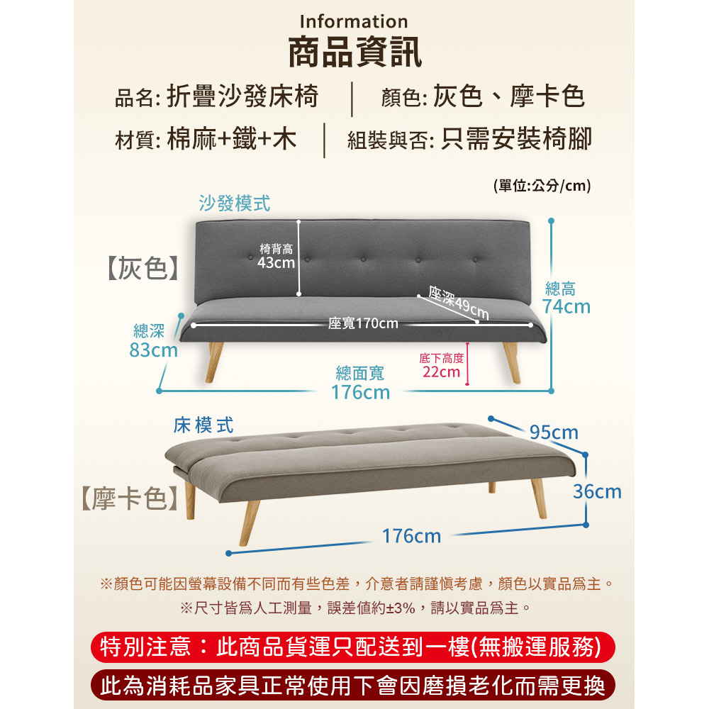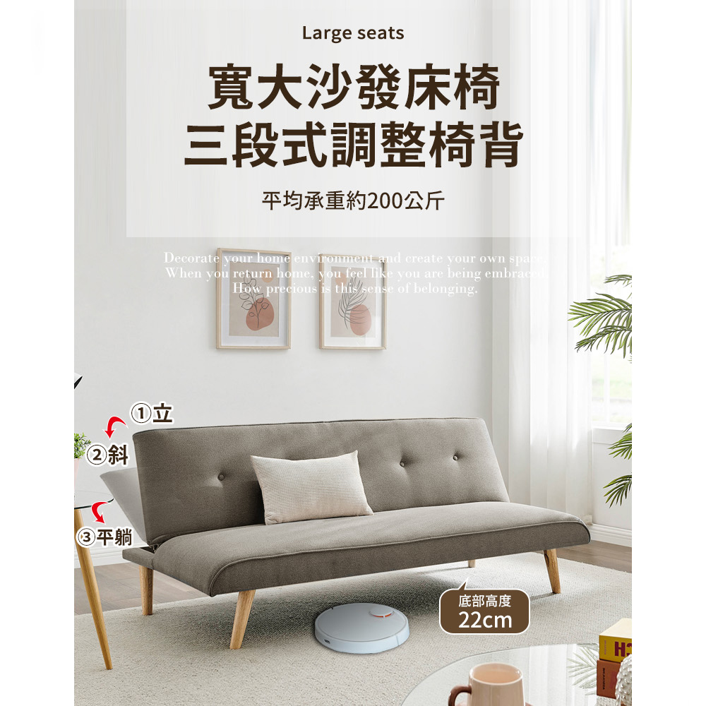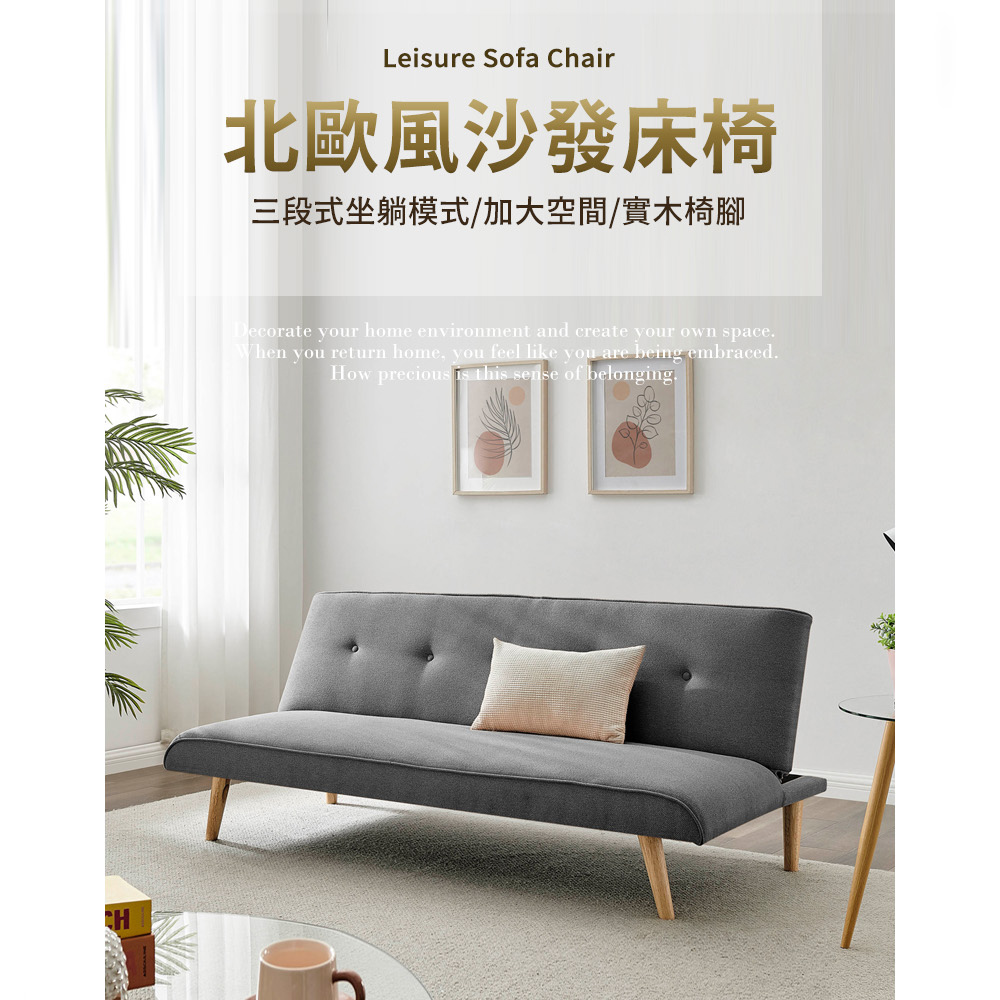 三段調節 坐躺切換實木椅腳 堅固耐用棉麻布料 舒適坐感