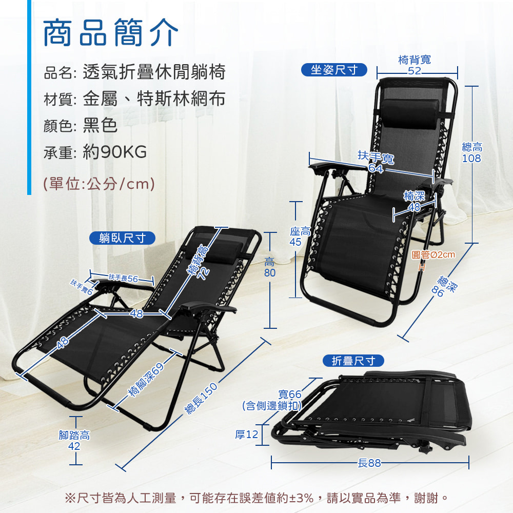 【AOTTO】無段式高承重透氣休閒躺椅(LC-001)