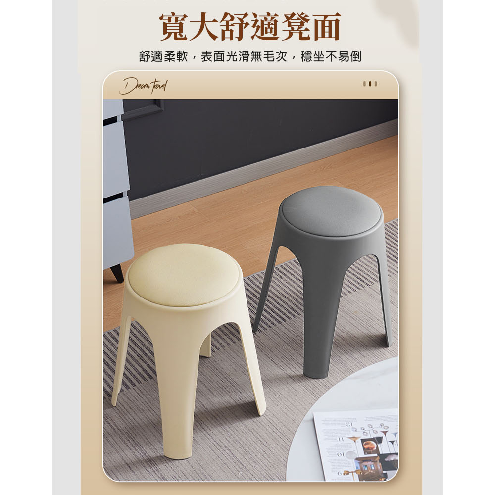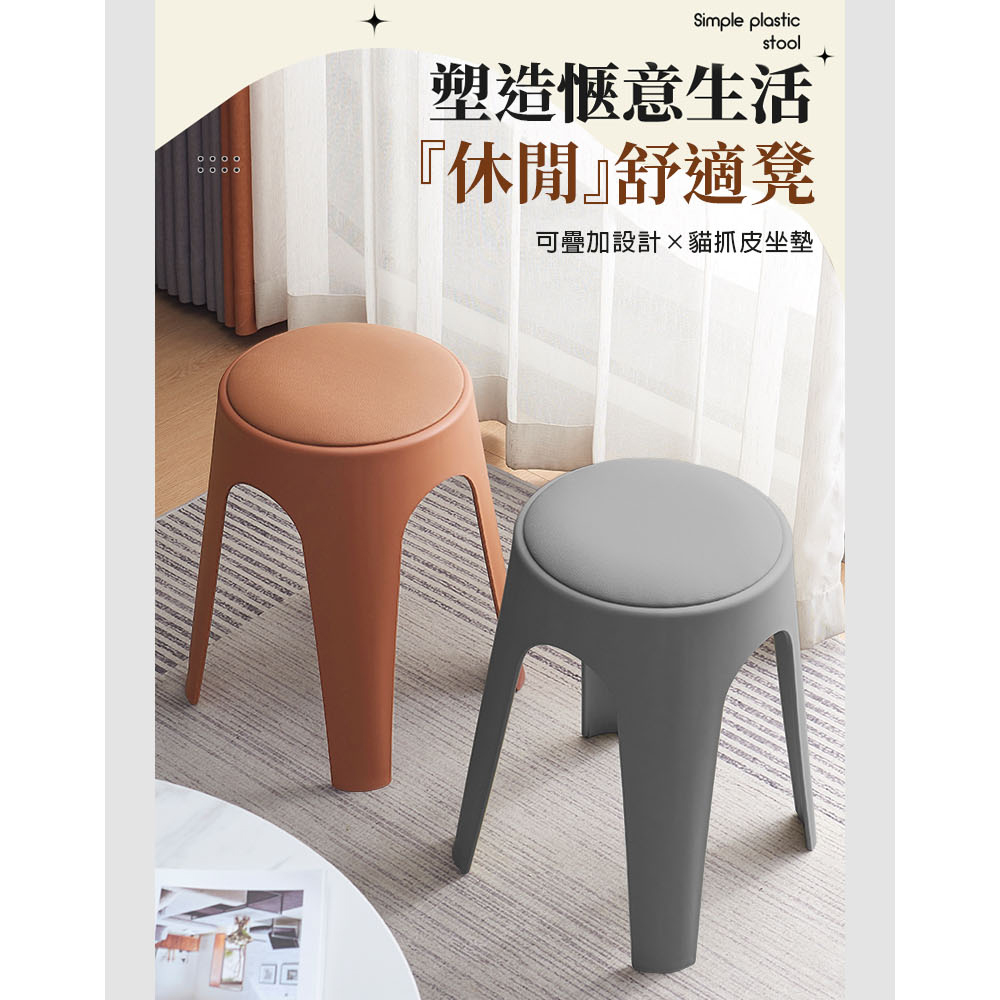 【AOTTO】莫蘭迪貓抓皮加厚疊加圓凳椅凳-2入灰色(ID-002GR*2)