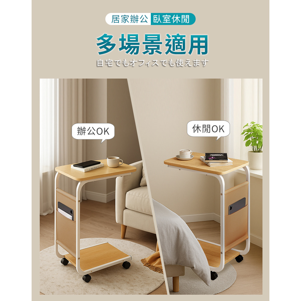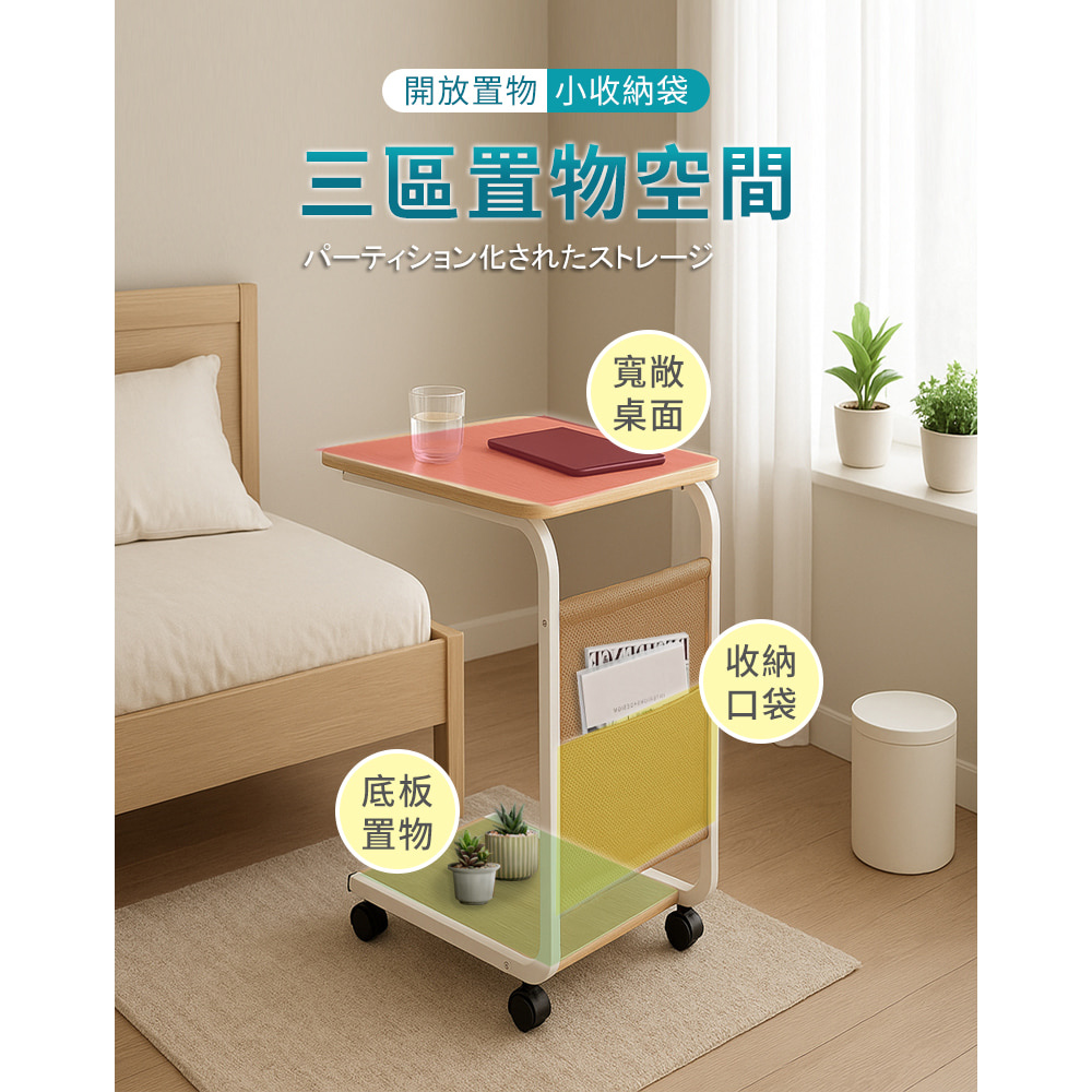 【AOTTO】簡約附輪雙層置物邊桌(FT-301)