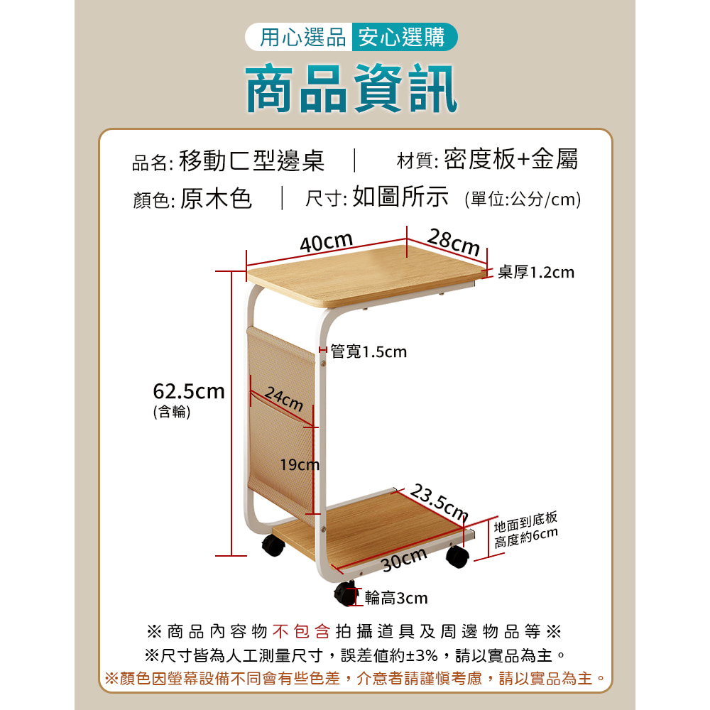 雙層置物 收納口袋 簡易清潔 防刮耐磨 附輪設計 移動方便尺寸:40*28*62.5cm±3%